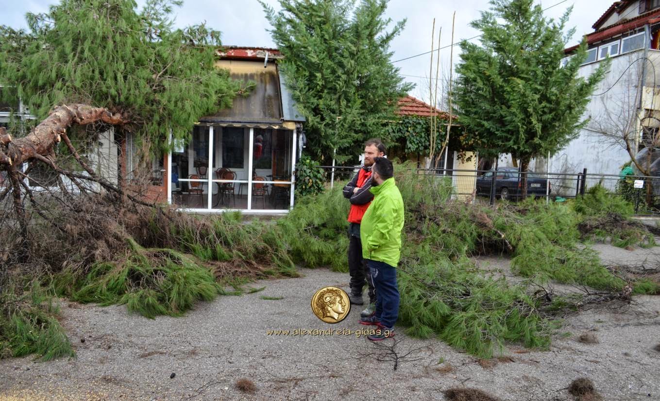 Ένα ολόκληρο πεύκο έπεσε από τον αέρα και τη βροχή στο κέντρο των Καβασίλων το μεσημέρι της Παρασκευής 06/02.