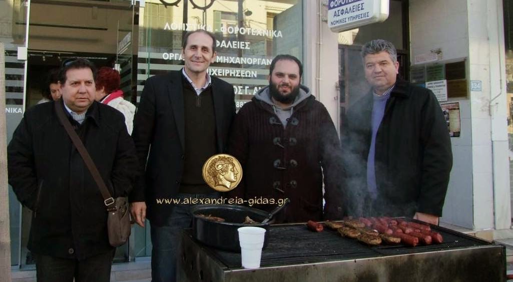Με φίλους και συγγενείς πέρασαν την Τσικνοπέμπτη μπροστά στο γραφείο του στη Βετσοπούλου ο Ανδρέας Μαυρόπουλος και η οικογένειά του.
