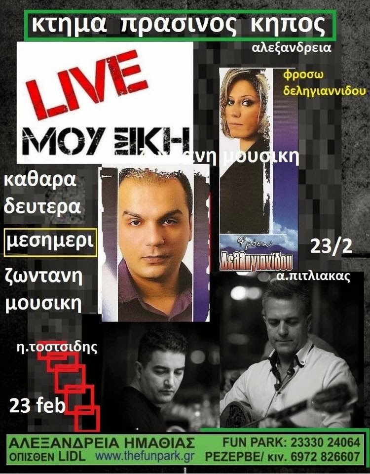 Το βράδυ της Παρασκευής 20, του Σαββάτου 21 Φεβρουαρίου και το μεσημέρι της Κυριακής 22 Φεβρουαρίου απολαύστε τις υπέροχες γεύσεις του καταστήματος παρέα με τις καλύτερες μουσικές επιλογές στο ζωντανό πρόγραμμα του ΠΡΑΣΙΝΟΥ ΚΗΠΟΥ.