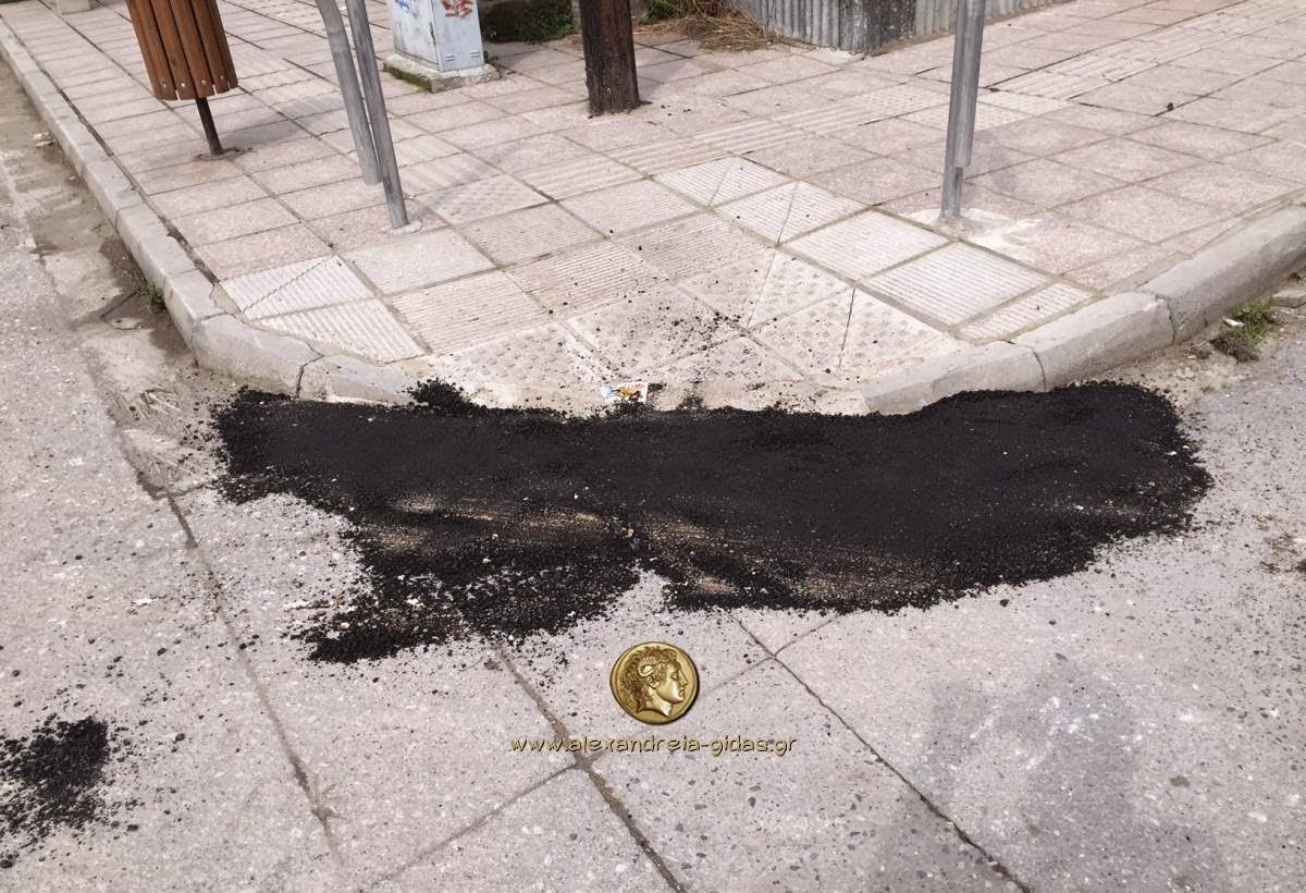 Κομμάτια πίσσας στους δρόμους της Αλεξάνδρειας σε σημεία όπου υπήρχαν λακκούβες, έριξαν σήμερα το πρωί συνεργεία του δήμου Αλεξάνδρειας.
