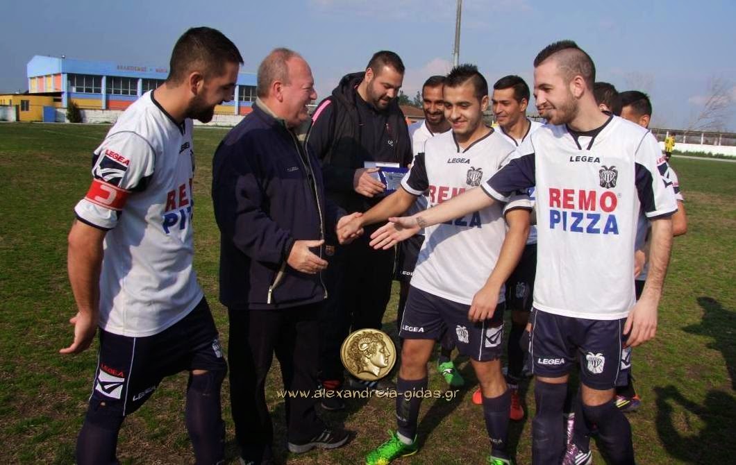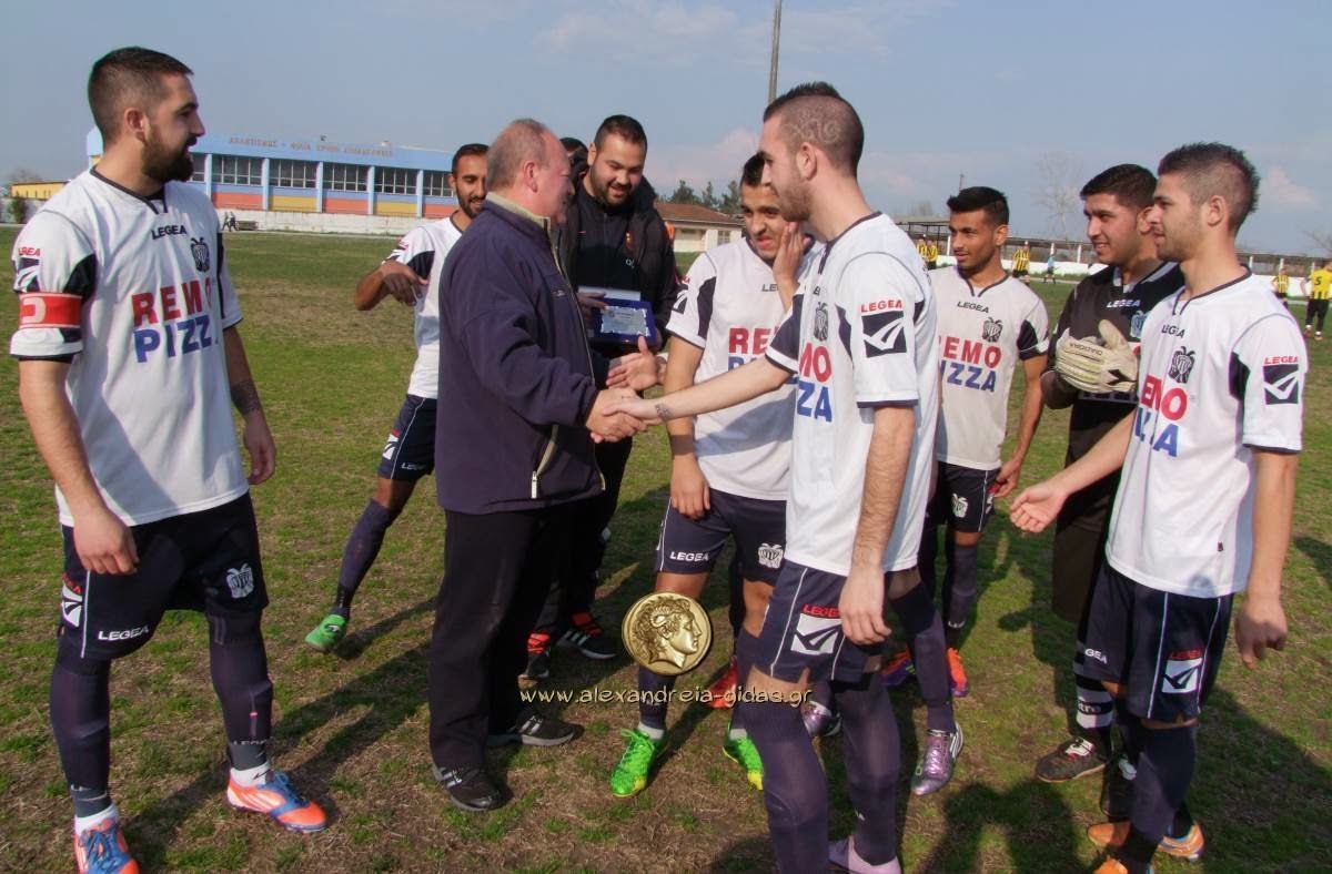 Πριν από τον αγώνα η ομάδα του ΠΑΟΚ Αλεξάνδρειας βράβευσε τον πρώην πρόεδρο της ομάδας Γιώργο Πασχαλίδη για την προσφορά του στο σωματείο.