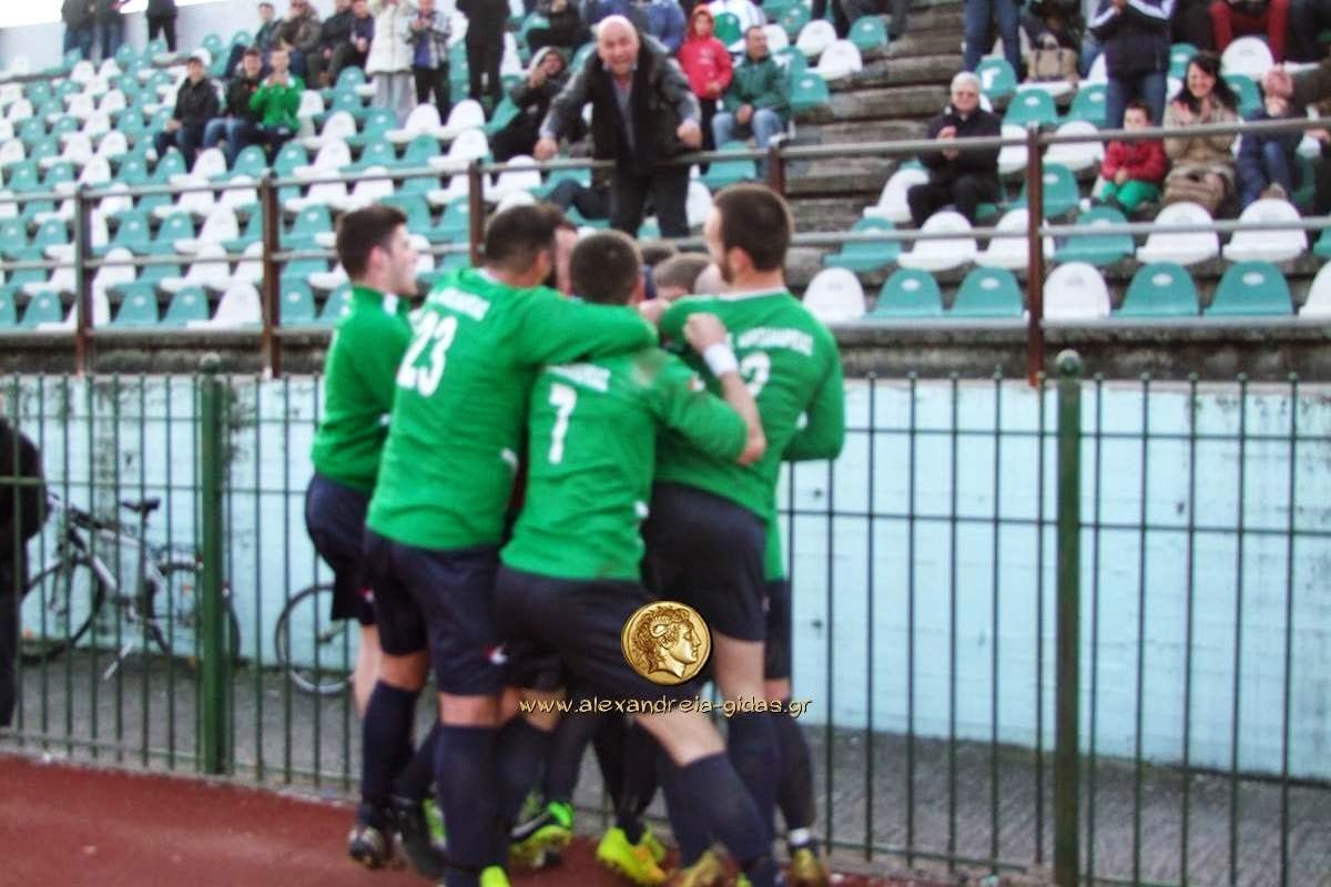 Με το γκολ του Σωτήρη Λίτσι η Α.Ε. Αλεξάνδρειας πήρε το ντέρμπι της αγωνιστικής κόντρα στην Ακαδημία Βέροιας και παρέμεινε πρώτη και αήττητη στον βαθμολογικό πίνακα του Α΄ Ομίλου στην Α2 της ΕΠΣ Ημαθίας.