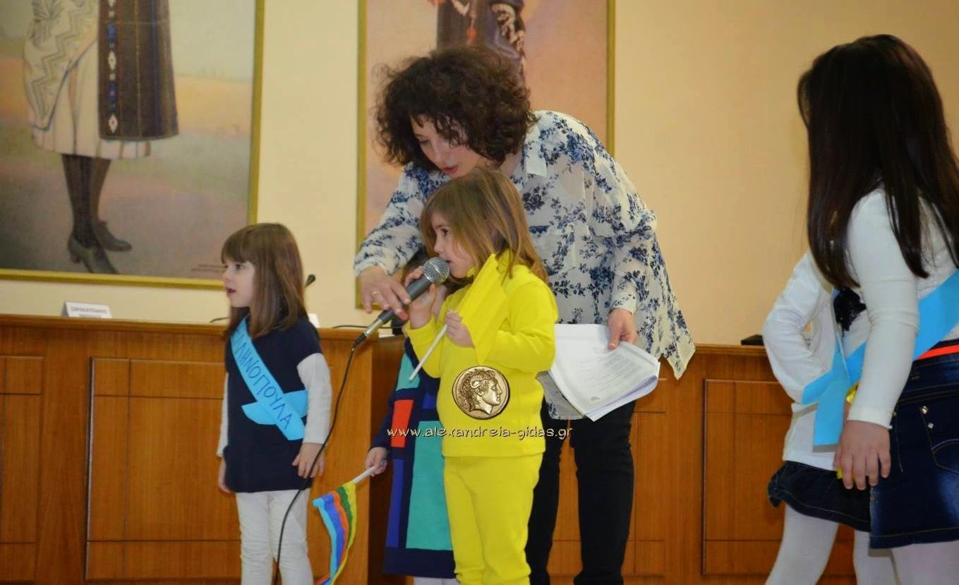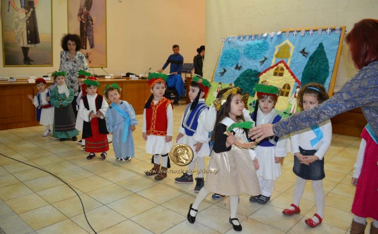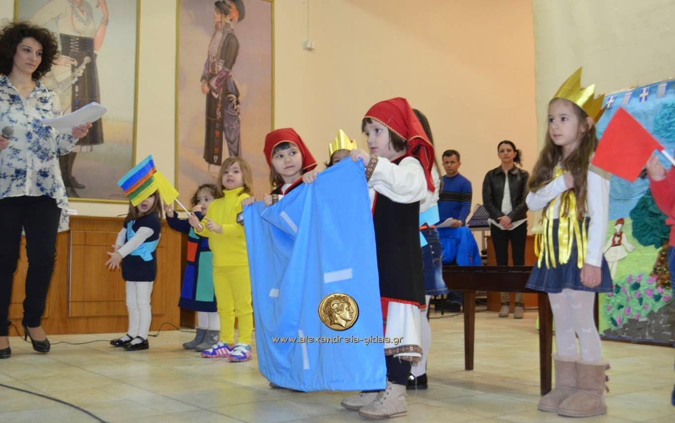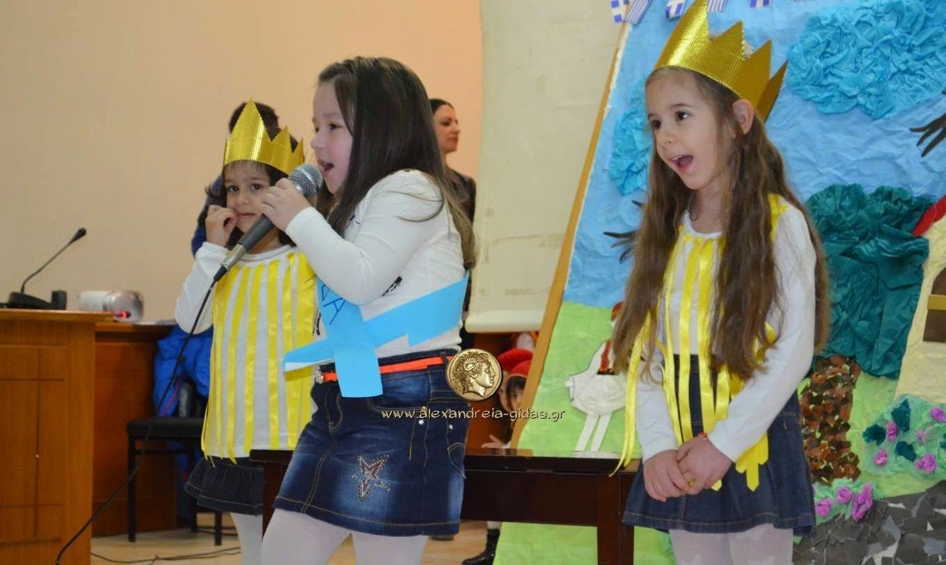 DSC_0172 (Αντιγραφή)Το πρωί της Δευτέρας 23 Μαρτίου, στο δημαρχείο Αλεξάνδρειας τα παιδιά και οι παιδαγωγοί του Β΄Βρεφονηπιακού Σταθμού Αλεξάνδρειας διοργάνωσαν μία όμορφη εκδήλωση για τον εορτασμό της 25η Μαρτίου με θέμα: «Καλύτερα μιας ώρας ελεύθερη ζωή παρά σαράντα χρόνια σκλαβιά και φυλακή».