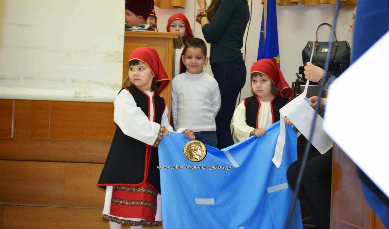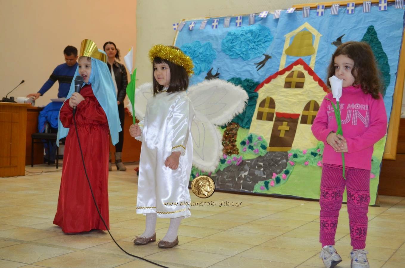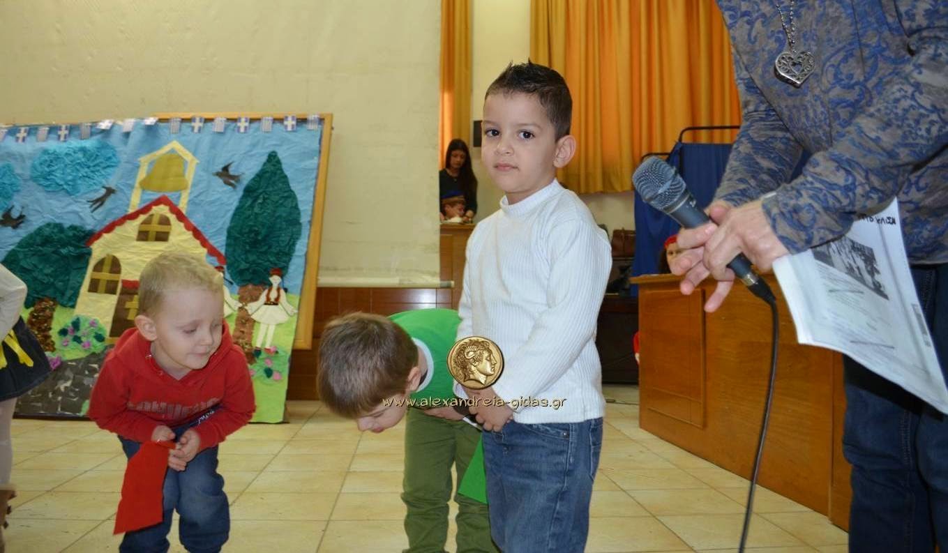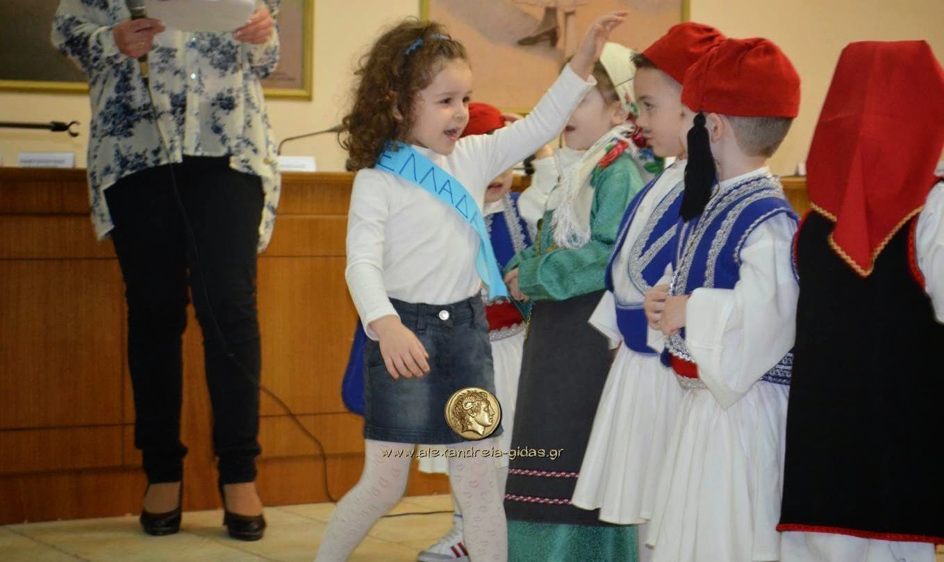 DSC_0172 (Αντιγραφή)Το πρωί της Δευτέρας 23 Μαρτίου, στο δημαρχείο Αλεξάνδρειας τα παιδιά και οι παιδαγωγοί του Β΄Βρεφονηπιακού Σταθμού Αλεξάνδρειας διοργάνωσαν μία όμορφη εκδήλωση για τον εορτασμό της 25η Μαρτίου με θέμα: «Καλύτερα μιας ώρας ελεύθερη ζωή παρά σαράντα χρόνια σκλαβιά και φυλακή».
