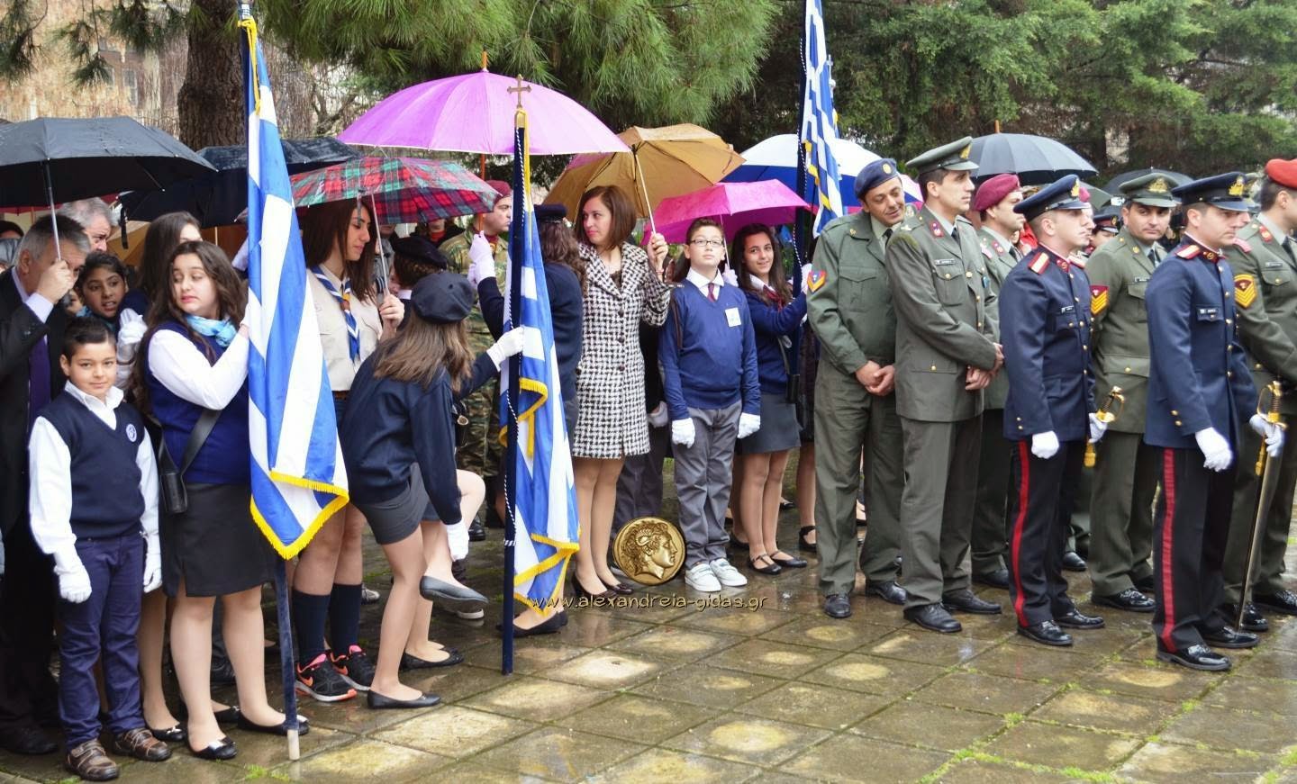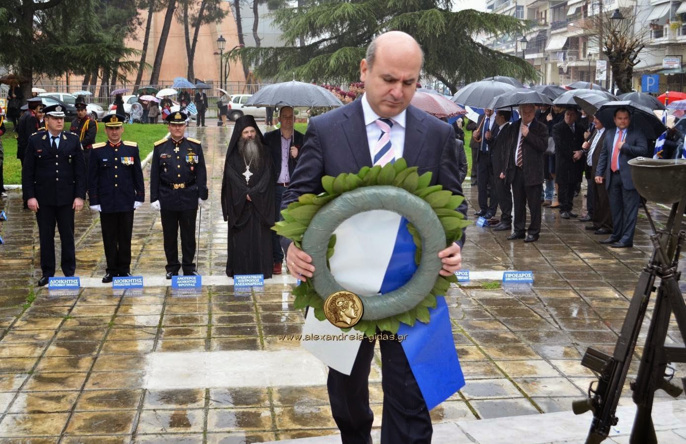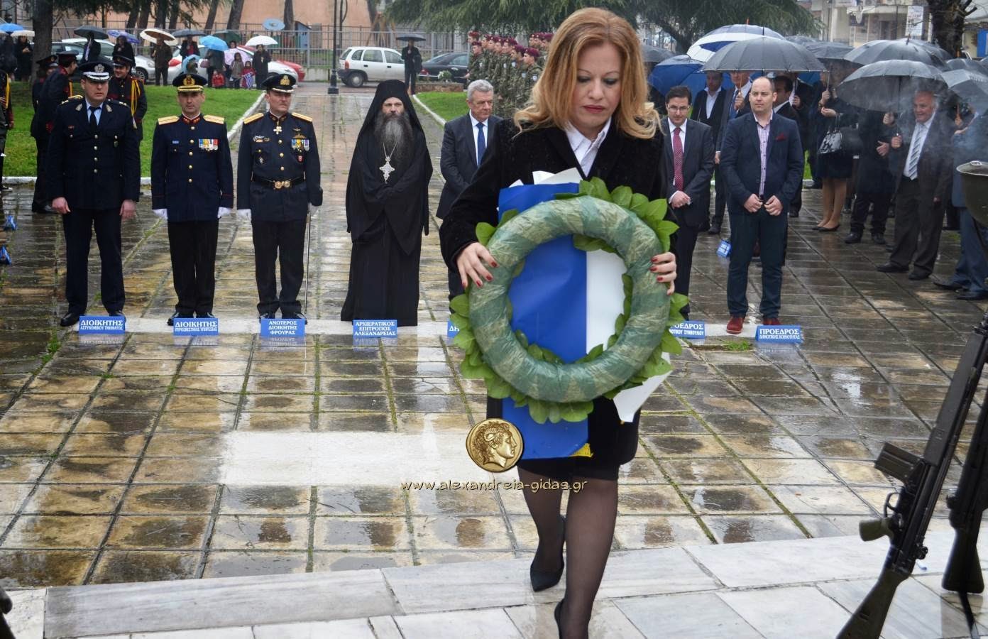 Με κάθε επισημότητα και λαμπρότητα πραγματοποιήθηκε το πρωί της Τετάρτης 25ης Μαρτίου η κατάθεση στεφάνων στο άγαλμα του Ηρώου στην Αλεξάνδρεια.