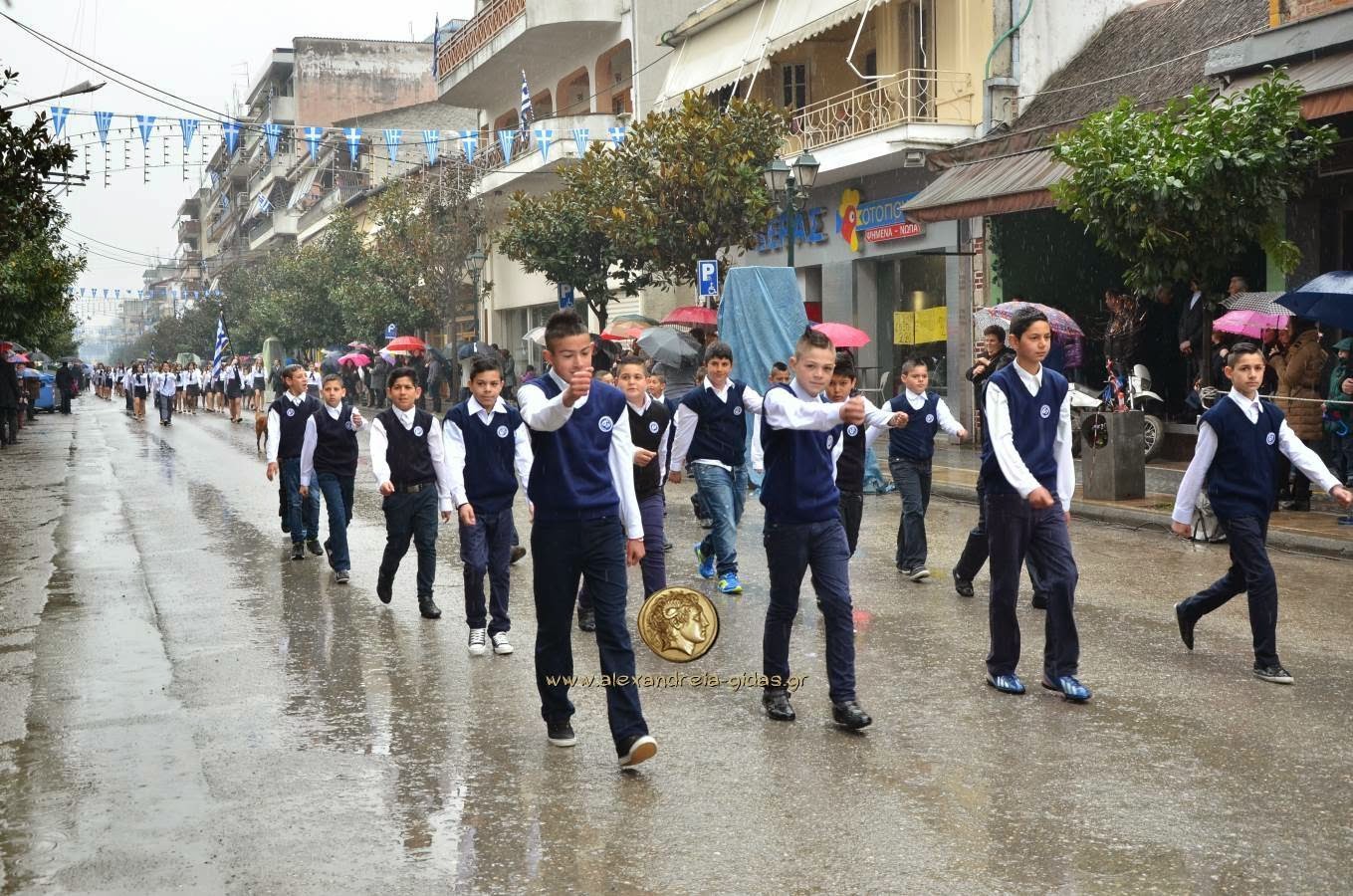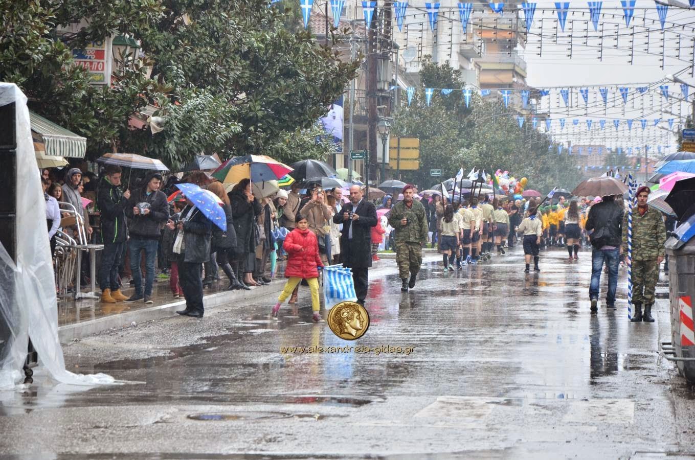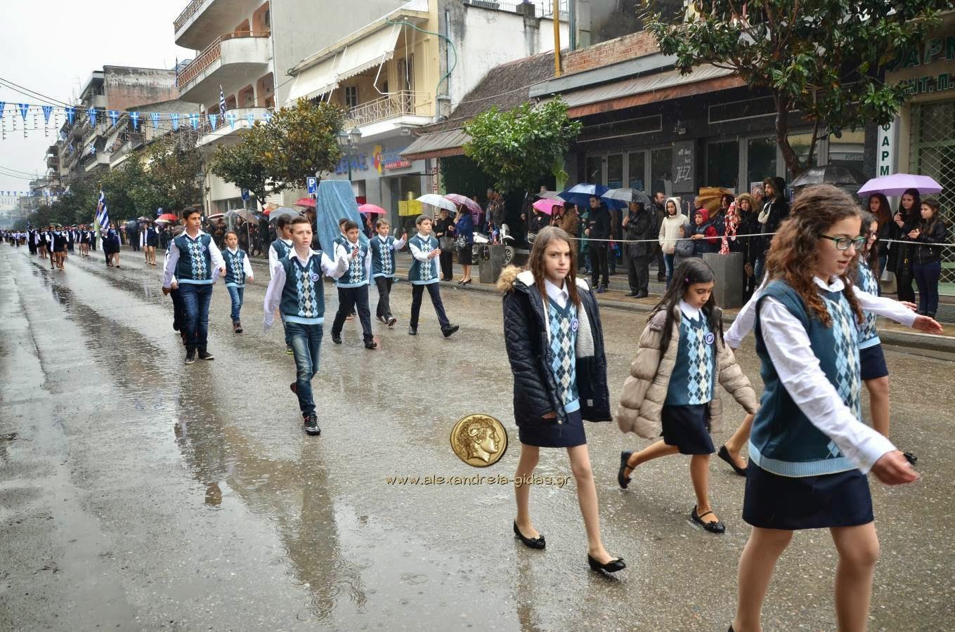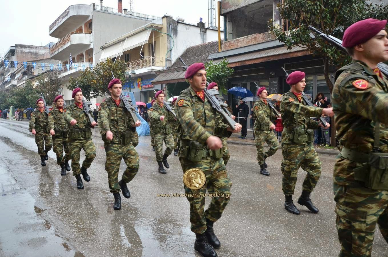 Παρά τη βροχή, πραγματοποιήθηκε κανονικά η μαθητική και στρατιωτική παρέλαση για την 25η Μαρτίου στην Αλεξάνδρεια.