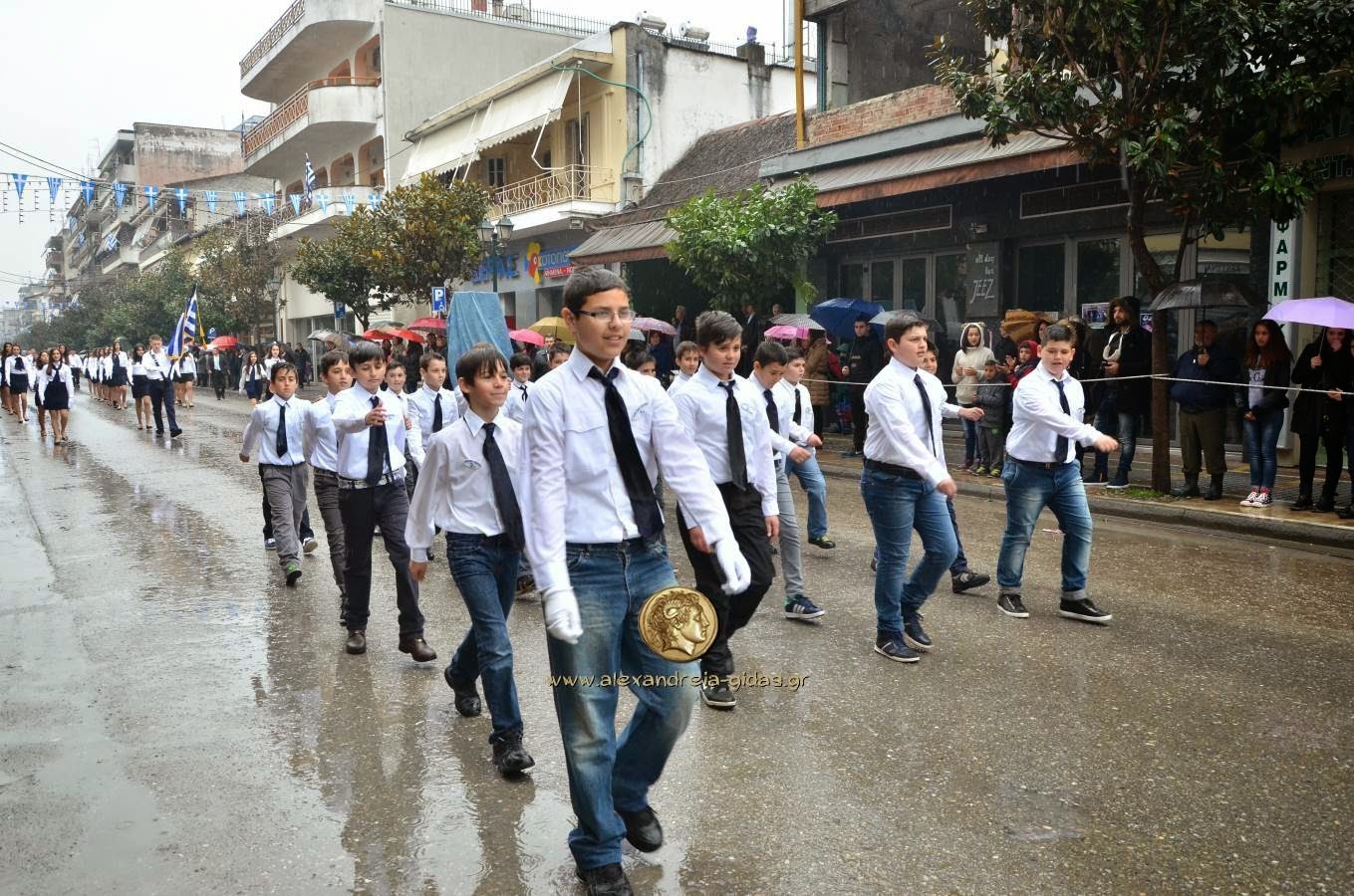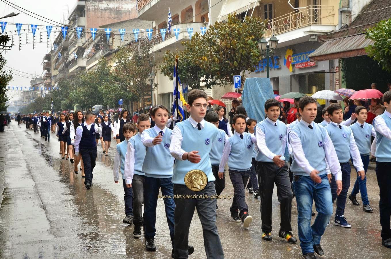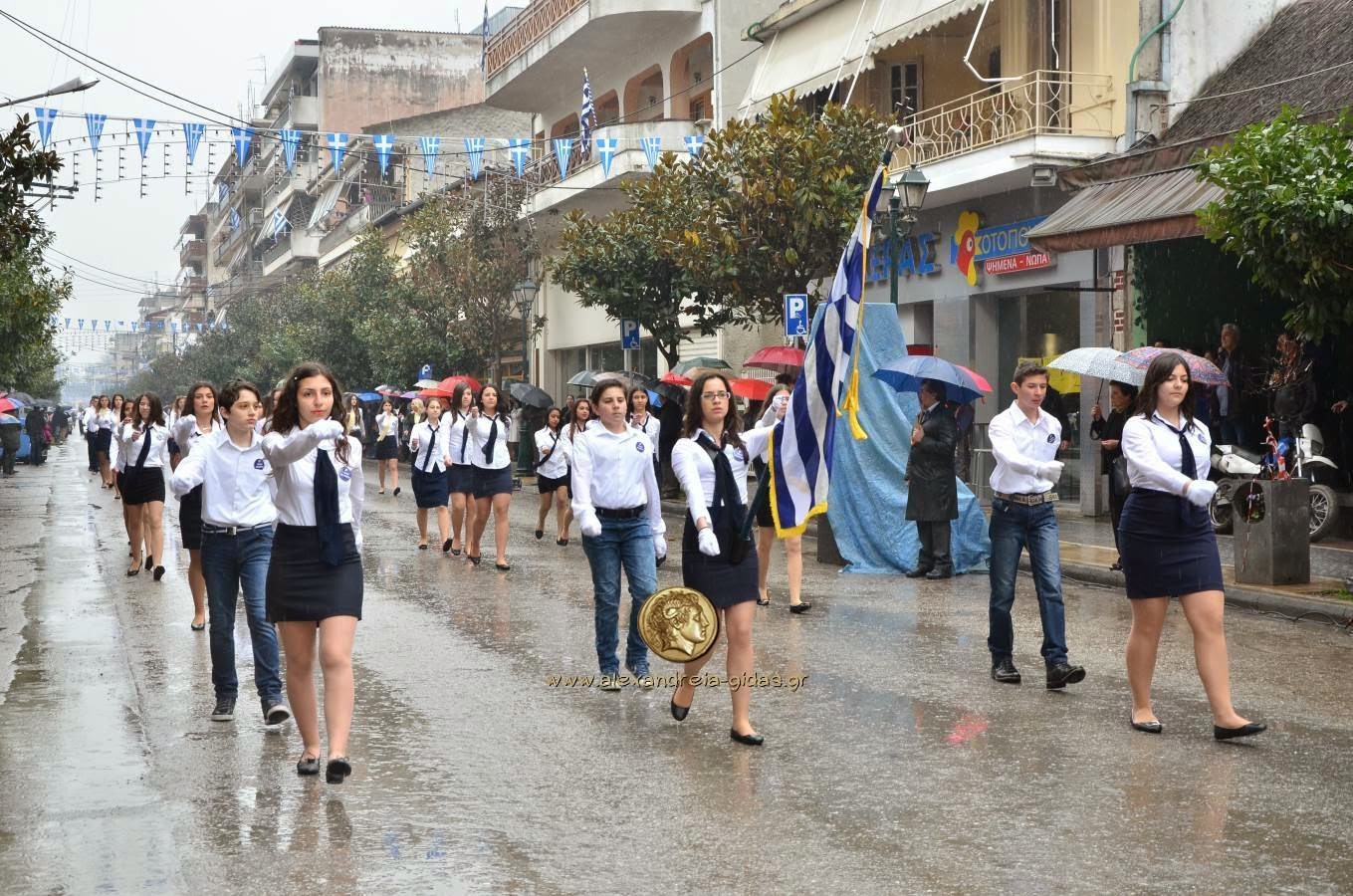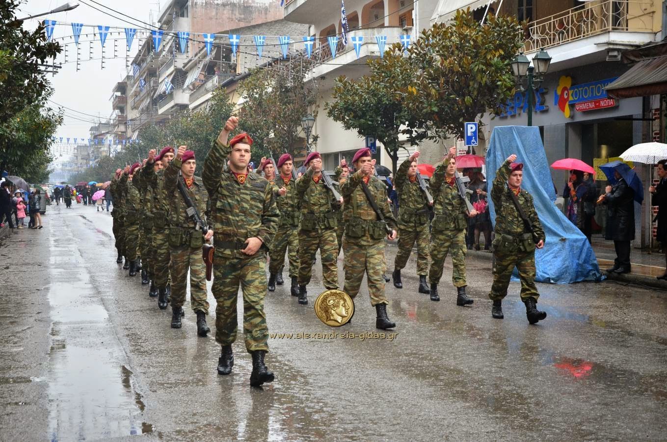 Παρά τη βροχή, πραγματοποιήθηκε κανονικά η μαθητική και στρατιωτική παρέλαση για την 25η Μαρτίου στην Αλεξάνδρεια.