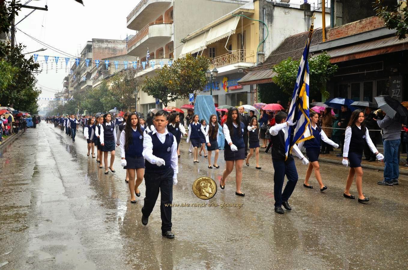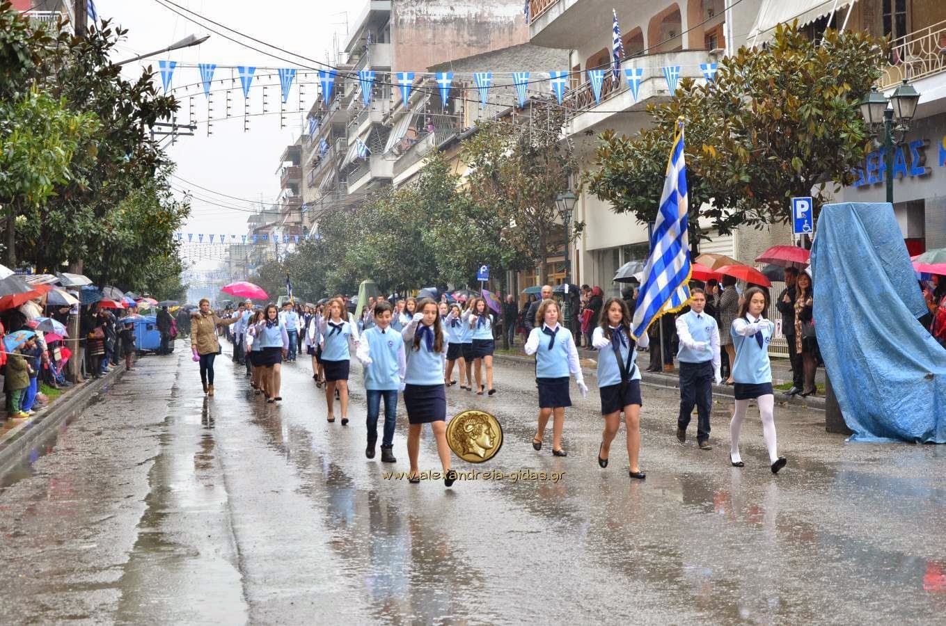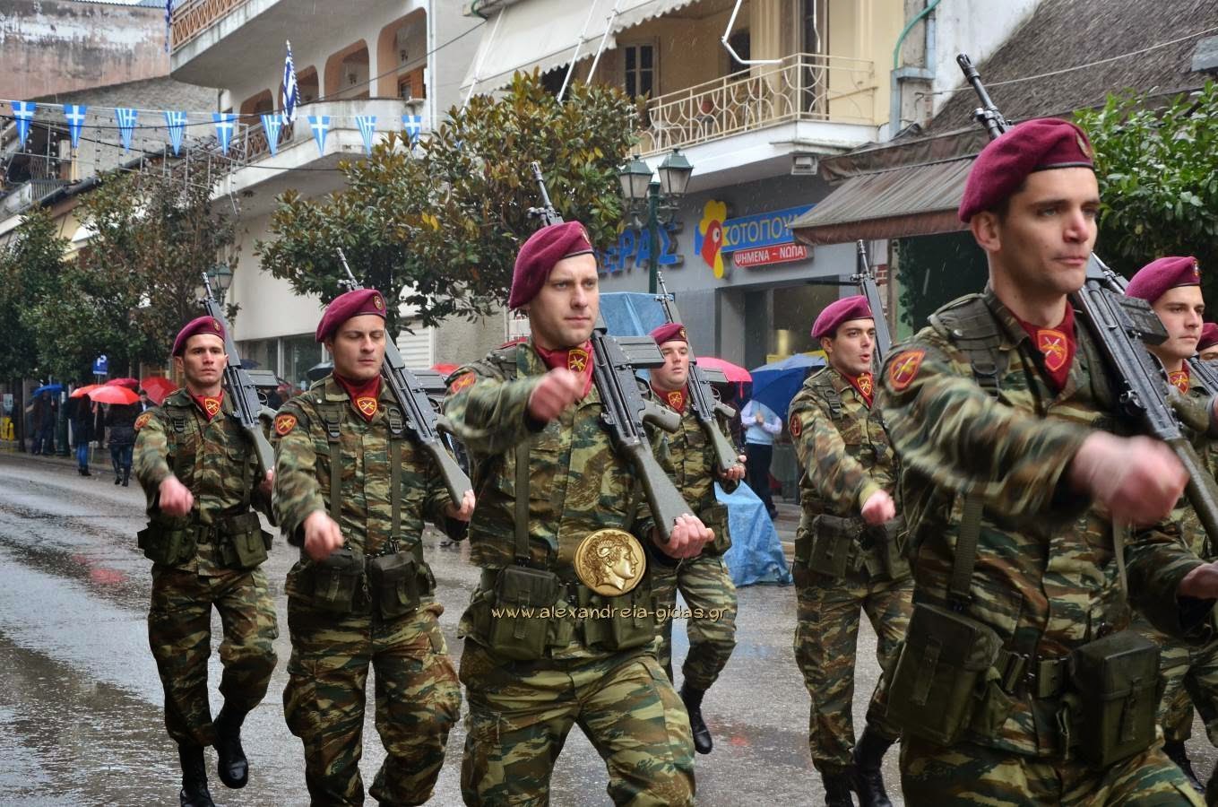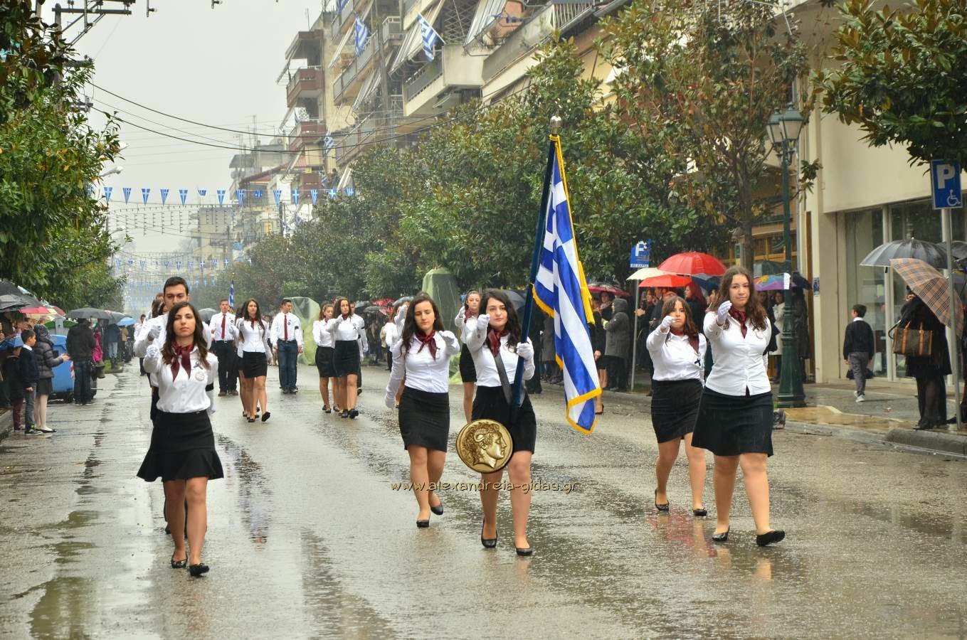 Παρά τη βροχή, πραγματοποιήθηκε κανονικά η μαθητική και στρατιωτική παρέλαση για την 25η Μαρτίου στην Αλεξάνδρεια.