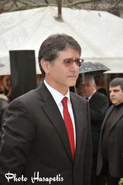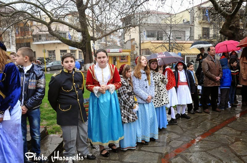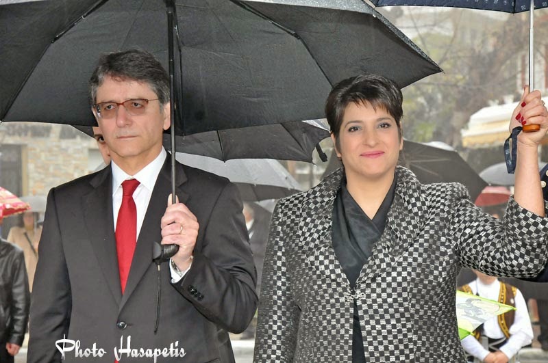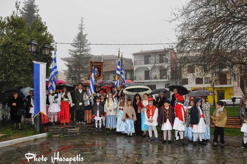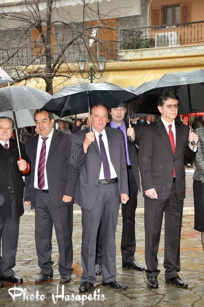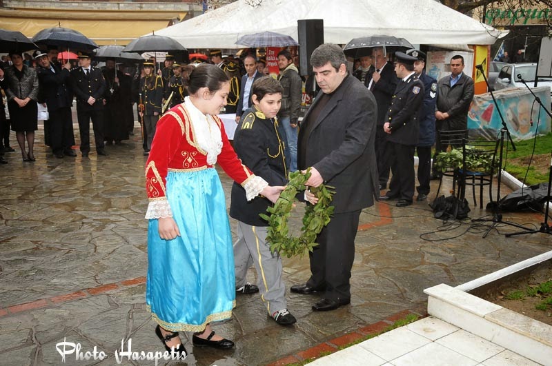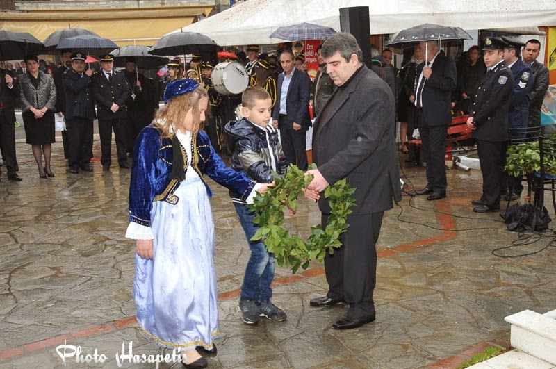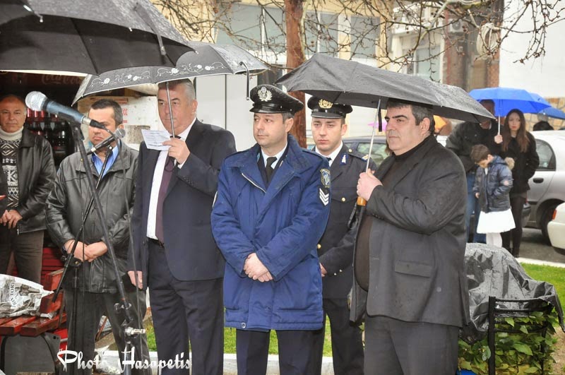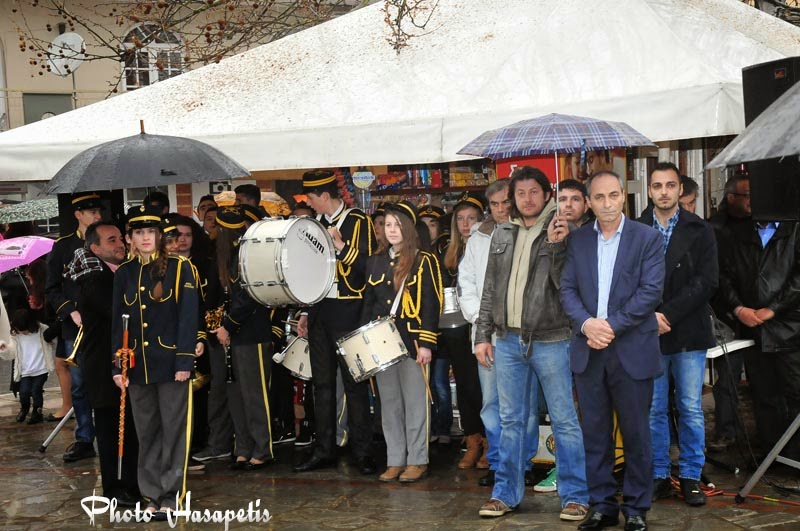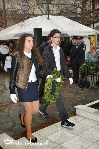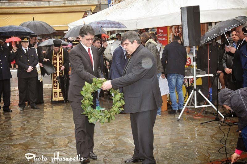 Έγινε υπό βροχή μόνο η κατάθεση στεφάνων στο μνημείο στην κεντρική πλατεία του Κολινδρού.