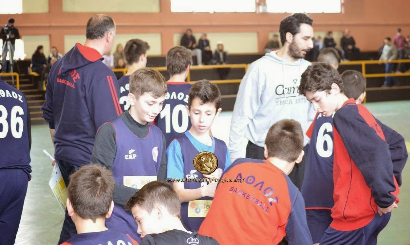 Μετά από ένα συναρπαστικό αγώνα που κράτησε αμείωτο το ενδιαφέρον των θεατών που το παρακολούθησαν ο ΑΘΛΟΣ Αλεξάνδρειας επικράτησε της ομάδας της Μελίκης με τελικό σκορ 40-39. Το παιχνίδι χάρισε όμορφες στιγμές, είχε πολύ δυνατές «μάχες» ανάμεσα στους μικρούς αθλητές των δύο ομάδων και κρίθηκε στα τελευταία δευτερόλεπτα με την ομάδα της πόλης μας να κρατά το μικρό προβάδισμα που είχε σε όλο το ματς.