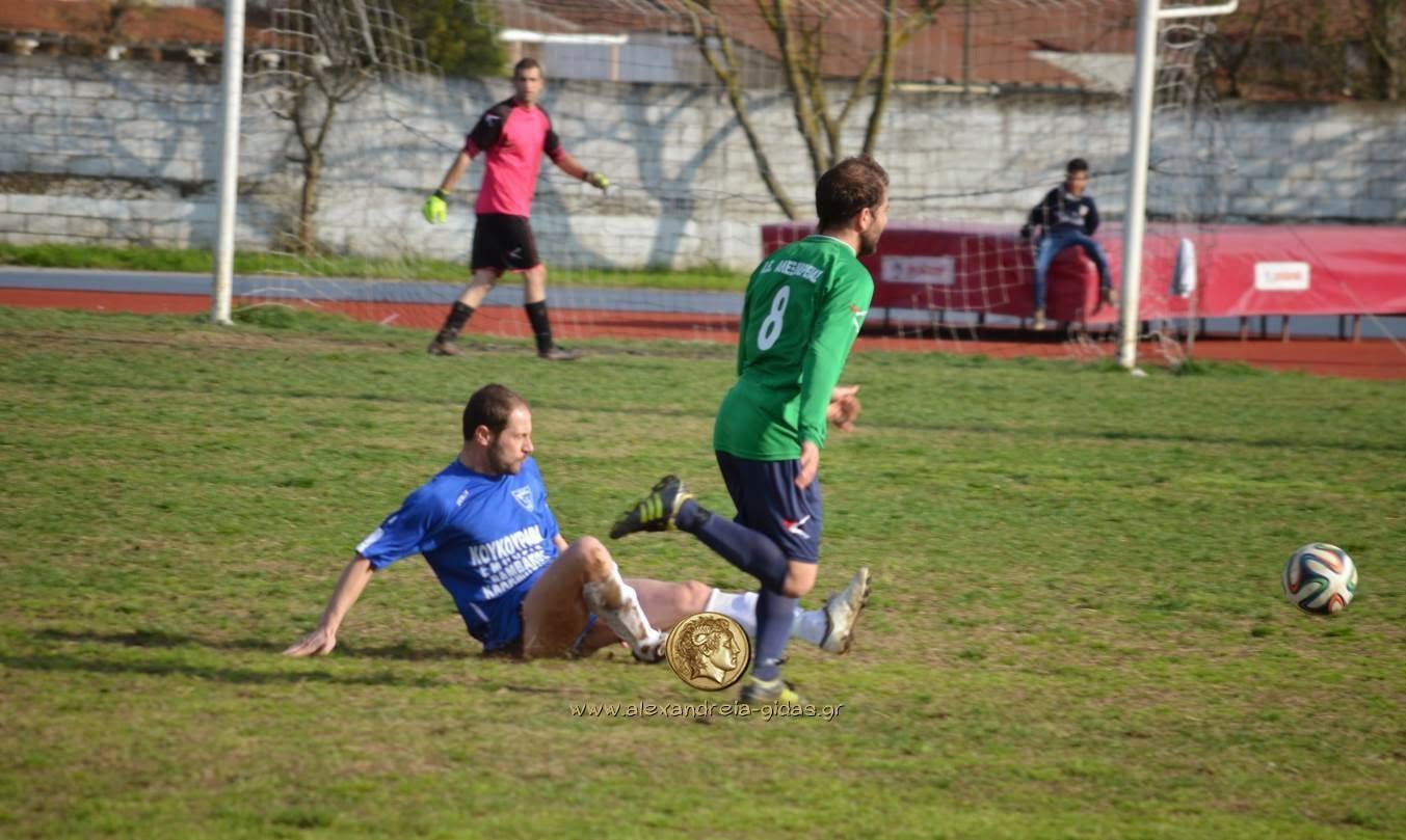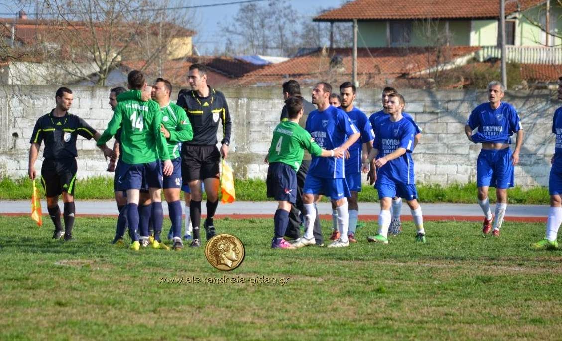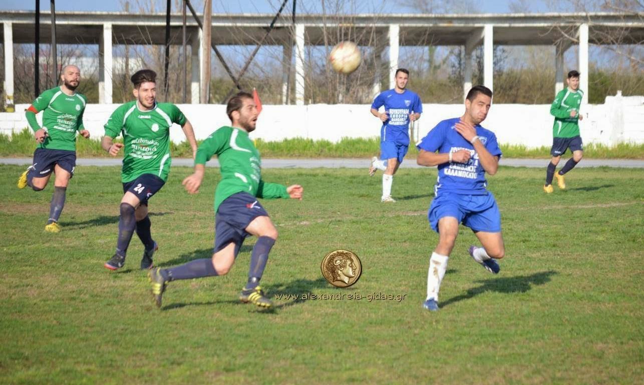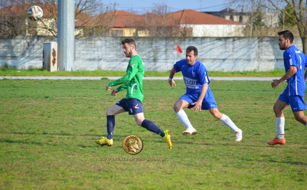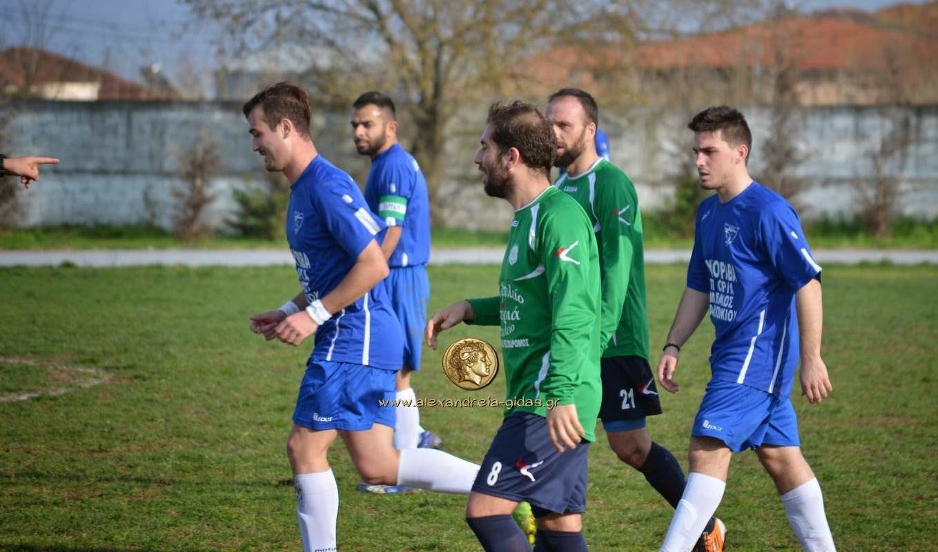 Οι ομάδες μπήκαν στα αποδυτήρια για την ανάπαυλα του ημιχρόνου με σκορ 0-0. Στο 2ο ημίχρονο η Αλεξάνδρεια άνοιξε το σκορ στο 55΄ με τον δραστήριο Αναστάση (1-0). Στο 71΄ οι φιλοξενούμενοι έφεραν το παιχνίδι στα ίσα με σκόρερ τον Καραντουλαμά.