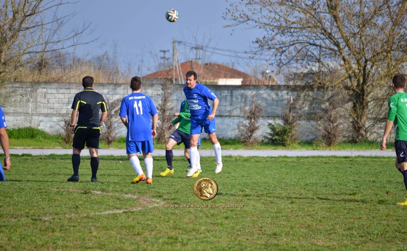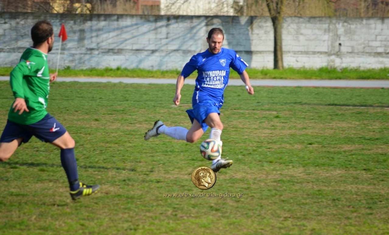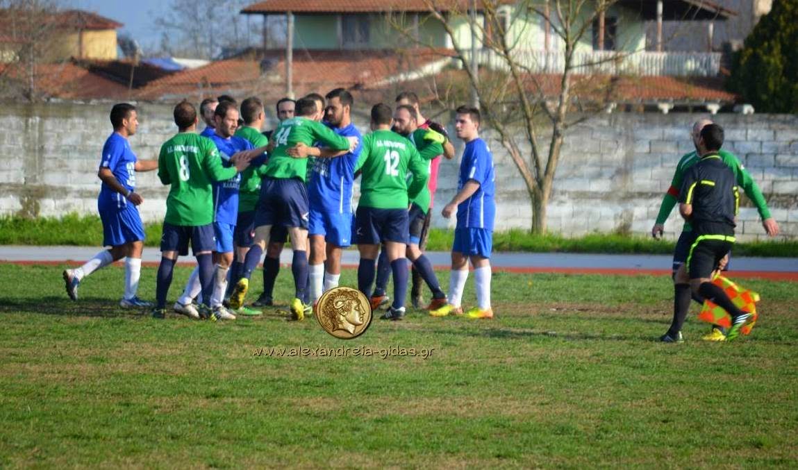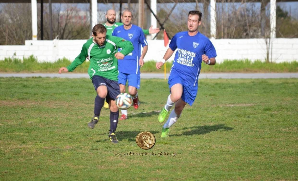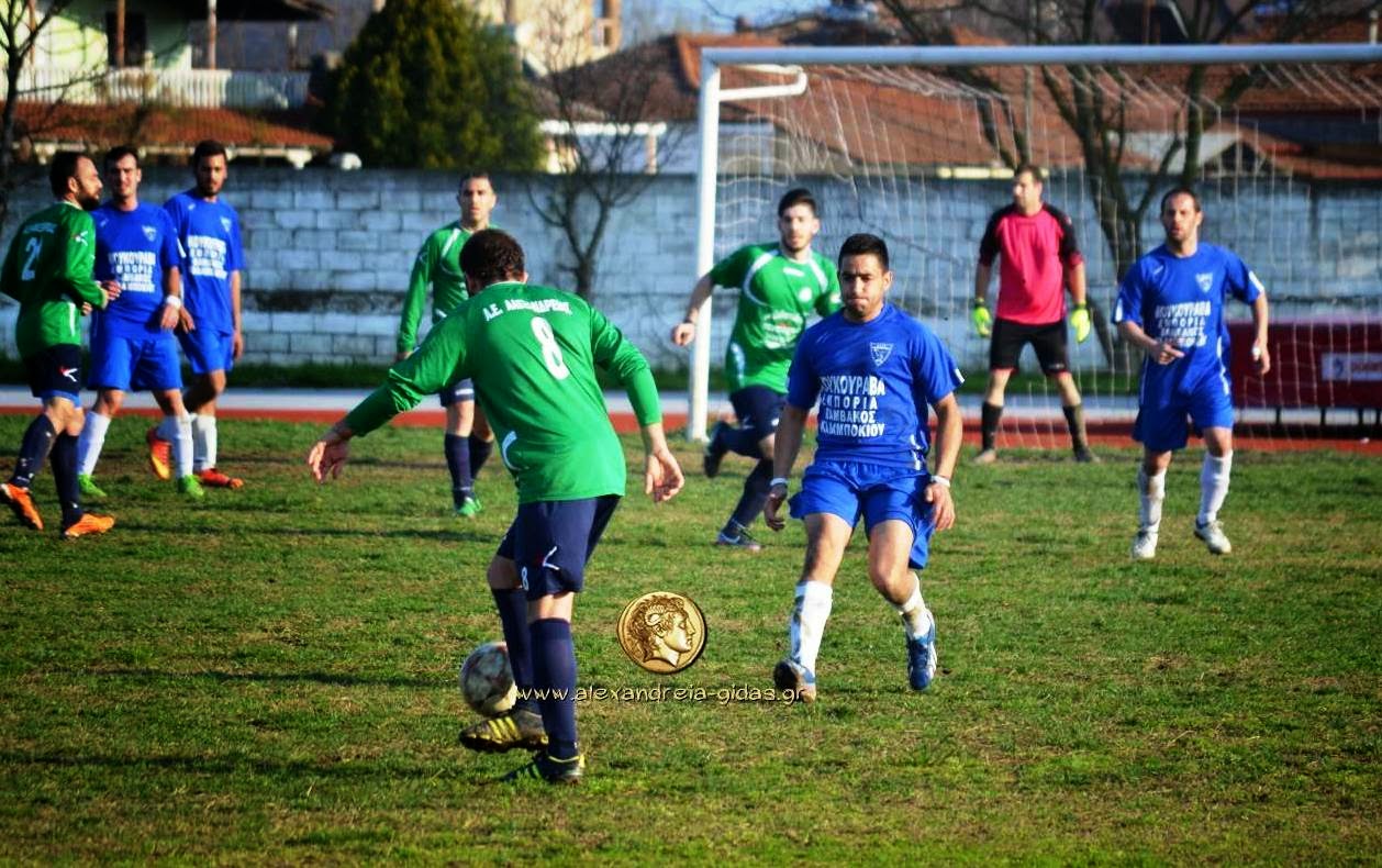 Οι ομάδες μπήκαν στα αποδυτήρια για την ανάπαυλα του ημιχρόνου με σκορ 0-0. Στο 2ο ημίχρονο η Αλεξάνδρεια άνοιξε το σκορ στο 55΄ με τον δραστήριο Αναστάση (1-0). Στο 71΄ οι φιλοξενούμενοι έφεραν το παιχνίδι στα ίσα με σκόρερ τον Καραντουλαμά.
