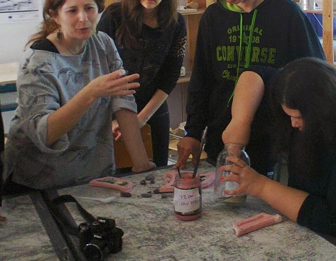 Στις 31 Μαρτίου 2015 η Β΄ τάξη του Γυμνασίου Πλατέος που υλοποιεί το πρόγραμμα «Σταυροδρόμι του πηλού-Μάθε μαζί μου», επισκέφτηκε το 1ο Ε.Ε.Ε.Ε.Κ. Πυλαίας-Χορτιάτη. Η επίσκεψη περιλάμβανε ξενάγηση στους χώρους του σχολείου και το εργαστήριο κεραμικής από τον Διευθυντή Βασίλη Ζωγράφο και παρουσίαση-επίδειξη για την διαδικασία παραγωγής κεραμικού αντικειμένου από τους μαθητές και την καθηγήτρια Κεραμικής Ειρήνη Ροντογιάννη. Περιλάμβανε ακόμη βιωματικές δράσεις, κατά τις οποίες οι μαθητές και οι μαθήτριες του Γυμνασίου Πλατέος γνώρισαν από κοντά τα παιδιά με ειδικές δεξιότητες και συνεργάστηκαν μαζί τους για τη διακόσμηση και την υάλωση κεραμικών αντικειμένων.