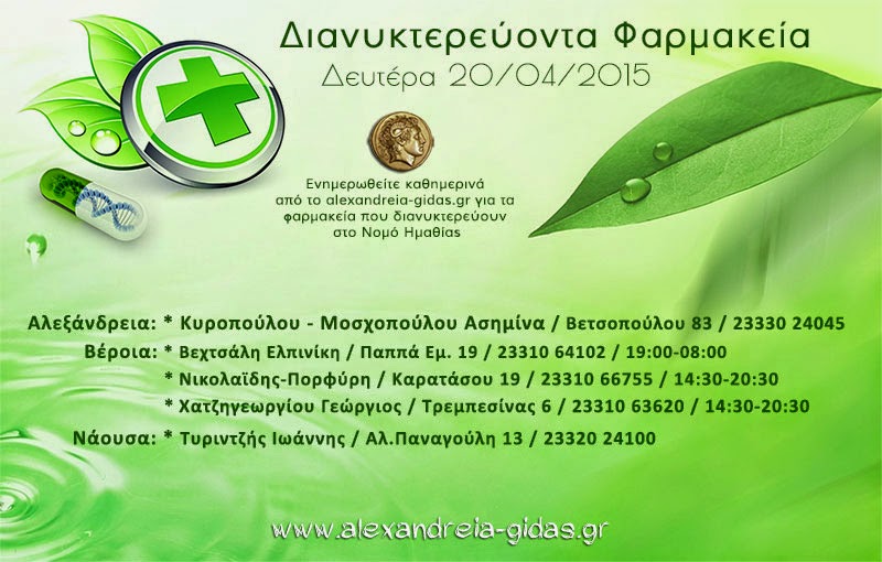 ΤΟΠΙΚΑ 20 Απριλίου, 2015 posted by admin Share Εφημερεύοντα – διανυκτερεύοντα φαρμακεία Ημαθίας Δευτέρα 20/04 Αλεξάνδρεια: Αφήστε μια απάντηση Ακύρωση απάντησηςΗ ηλ. διεύθυνση σας δεν δημοσιεύεται. Τα υποχρεωτικά πεδία σημειώνονται με *Σχόλιο * Όνομα Email Ιστότοπος Αποθήκευσε το όνομά μου, email, και τον ιστότοπο μου σε αυτόν τον πλοηγό για την επόμενη φορά που θα σχολιάσω.