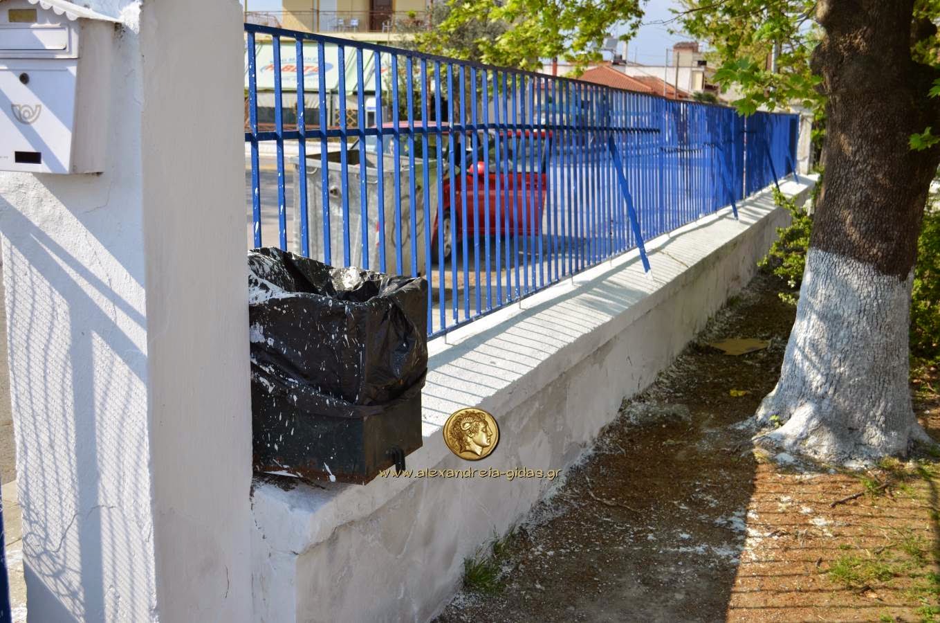 Τον Αντώνη Κίτσα (φώτο) συναντήσαμε το μεσημέρι έξω από το 2ο Δημοτικό Σχολείο Αλεξάνδρειας να βάφει εσωτερικούς και εξωτερικούς χώρους του σχολείου.