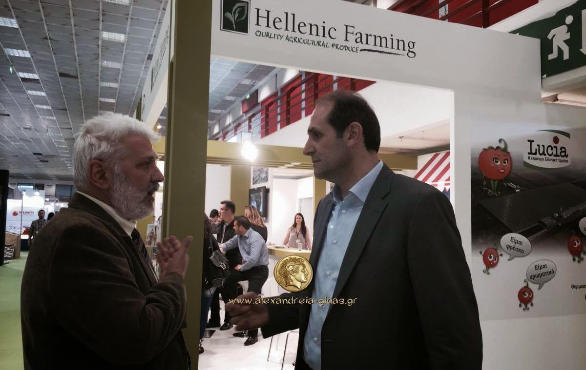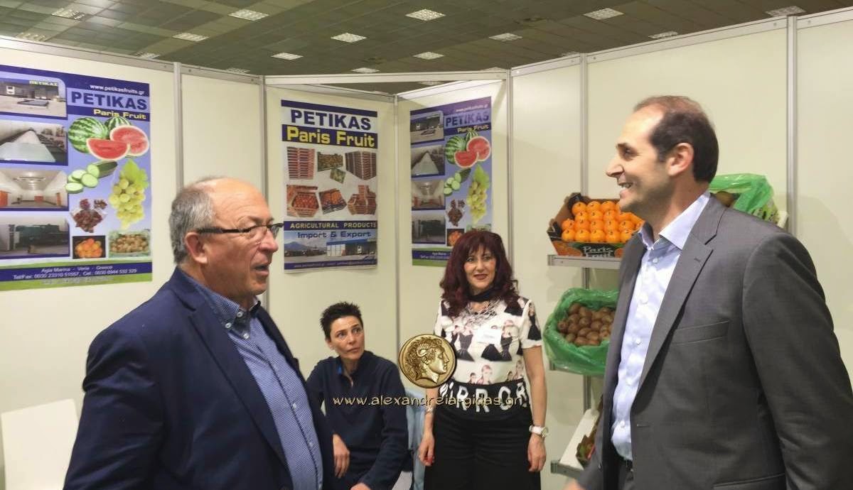 Είχε την ευκαιρία να συζητήσει με τους εκπροσώπους των συνεταιρισμών, των εξαγωγέων και των ομάδων παραγωγών  της Ημαθίας και να τους συγχαρεί για την άψογη παρουσία και την προσπάθεια που καταβάλλουν για να αναδείξουν και να προωθήσουν τα προϊόντα της περιοχής μας.