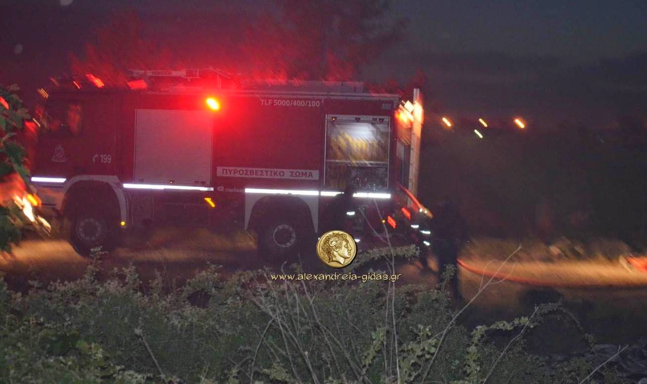 Φωτιά ξέσπασε σε αποθήκη πλαστικών λίγο έξω από την Αλεξάνδρεια το βράδυ της Τρίτης.