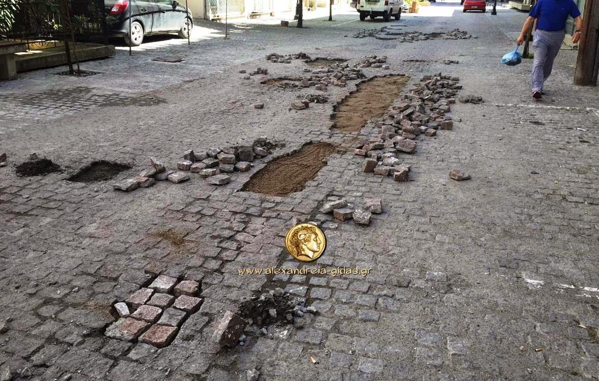 Ο λόγος είναι οι διορθώσεις που γίνονται στα χαλασμένα σημεία του πεζοδρομημένου σημείο της οδού.