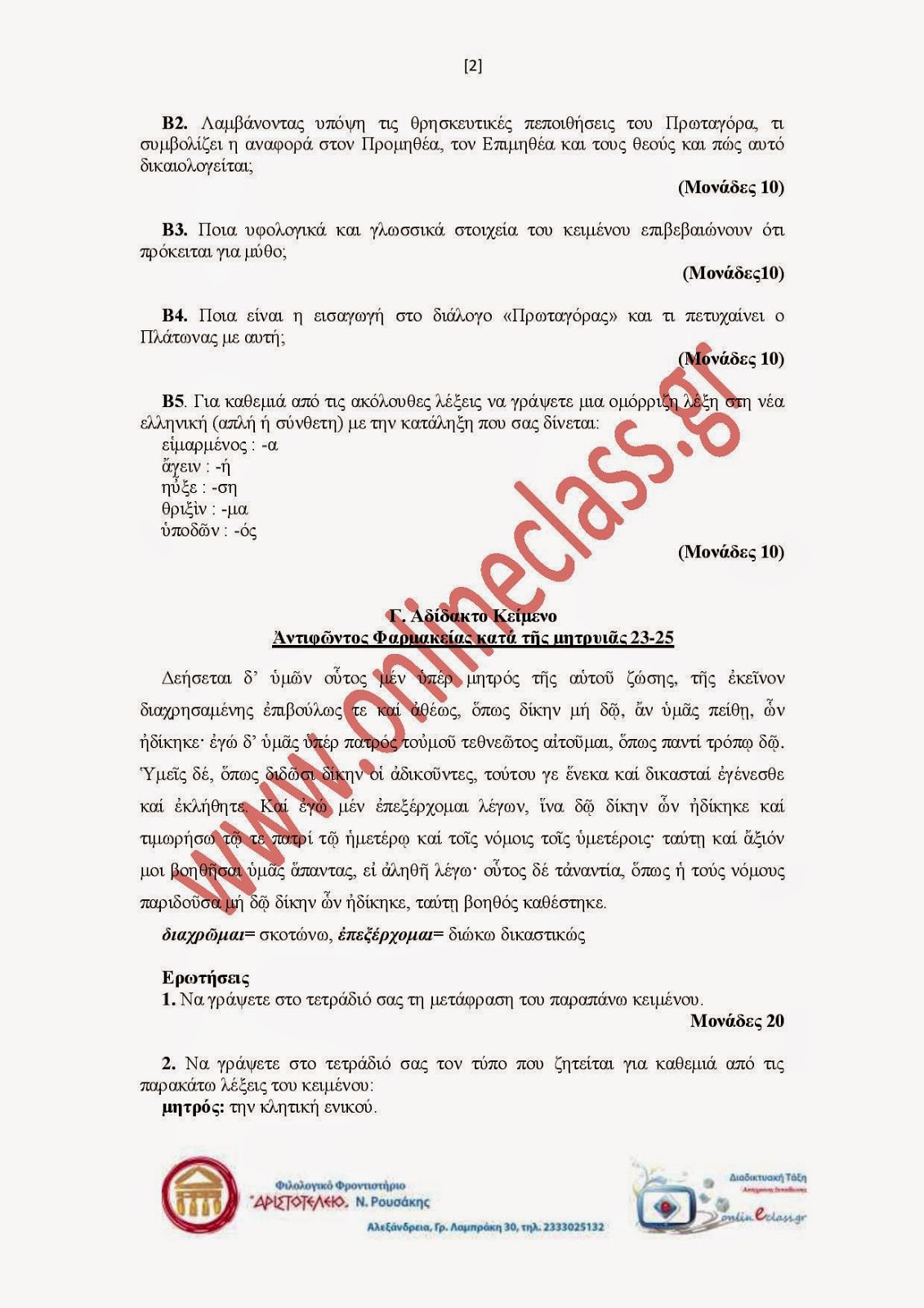 Το Αλεξάνδρεια-Γιδάς σε συνεργασία με το φιλολογικό φροντιστήριο ΑΡΙΣΤΟΤΕΛΕΙΟ στην Αλεξάνδρεια, το onlineclass.gr και την ΟΕΦΕ θα σας παρουσιάσουν και φέτος για τέταρτη συνεχόμενη χρονιά τις απαντήσεις στα θέματα των πανελληνίων εξετάσεων.