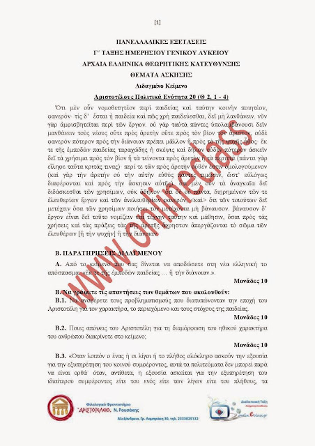 Το Αλεξάνδρεια-Γιδάς σε συνεργασία με το φιλολογικό φροντιστήριο ΑΡΙΣΤΟΤΕΛΕΙΟ στην Αλεξάνδρεια, το onlineclass.gr και την ΟΕΦΕ θα σας παρουσιάσουν και φέτος για τέταρτη συνεχόμενη χρονιά τις απαντήσεις στα θέματα των πανελληνίων εξετάσεων.