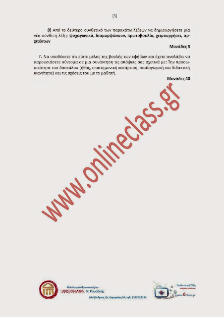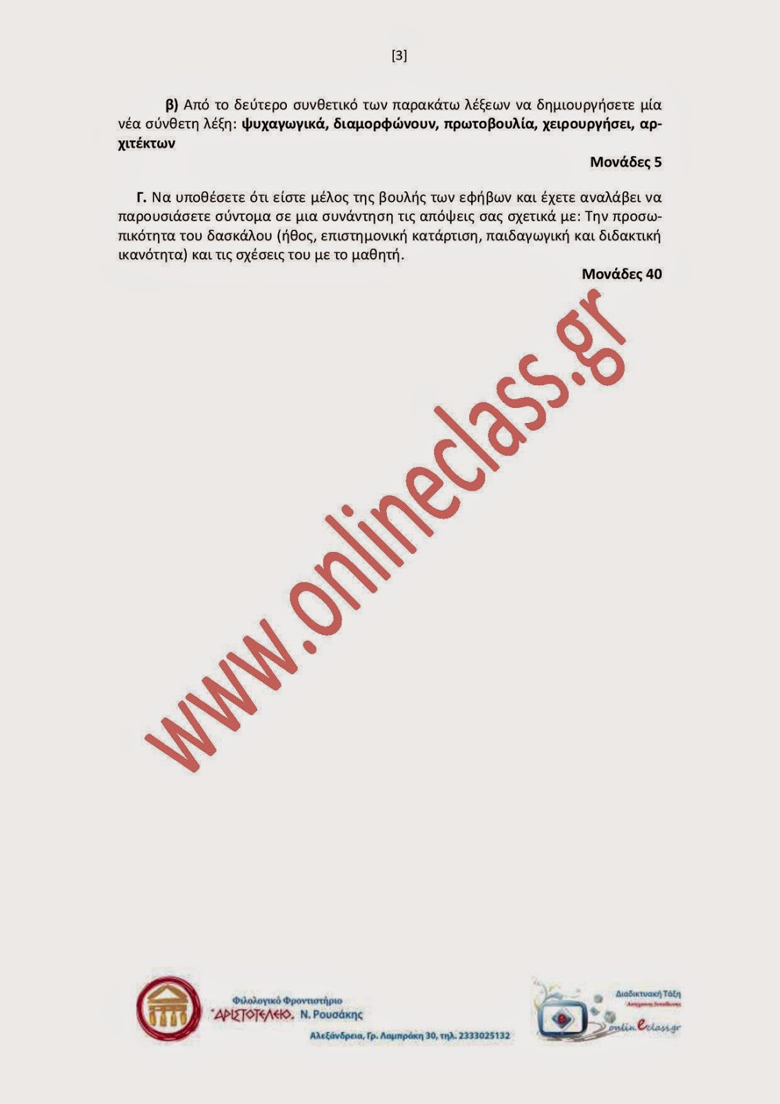 To Αλεξάνδρεια-Γιδάς σε συνεργασία με το φιλολογικό φροντιστήριο ΑΡΙΣΤΟΤΕΛΕΙΟ στην Αλεξάνδρεια, το onlineclass.gr και την ΟΕΦΕ θα σας παρουσιάσουν και φέτος για τέταρτη συνεχόμενη χρονιά τις απαντήσεις στα θέματα των πανελληνίων εξετάσεων.