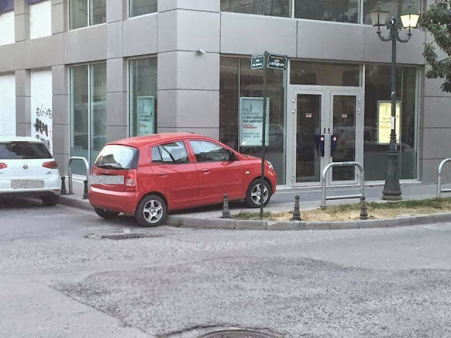 Το αυτοκίνητο έκλεισε το πέρασμα στους πεζούς και στους ΑμΕΑ μπροστά σε τράπεζα της Αλεξάνδρειας στη Βετσοπούλου.