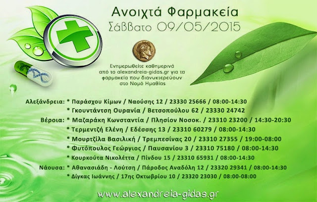 ΤΟΠΙΚΑ 9 Μαΐου, 2015 posted by admin Share Ανοιχτά φαρμακεία Ημαθίας Σάββατο 9 Μαΐου Αλεξάνδρεια: Αφήστε μια απάντηση Ακύρωση απάντησηςΗ ηλ. διεύθυνση σας δεν δημοσιεύεται. Τα υποχρεωτικά πεδία σημειώνονται με *Σχόλιο * Όνομα Email Ιστότοπος Αποθήκευσε το όνομά μου, email, και τον ιστότοπο μου σε αυτόν τον πλοηγό για την επόμενη φορά που θα σχολιάσω.