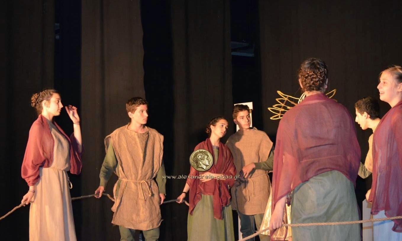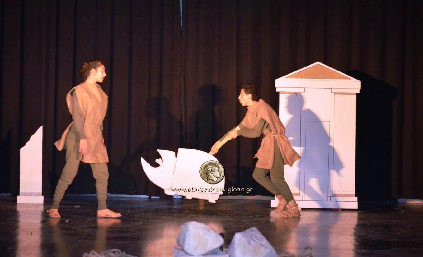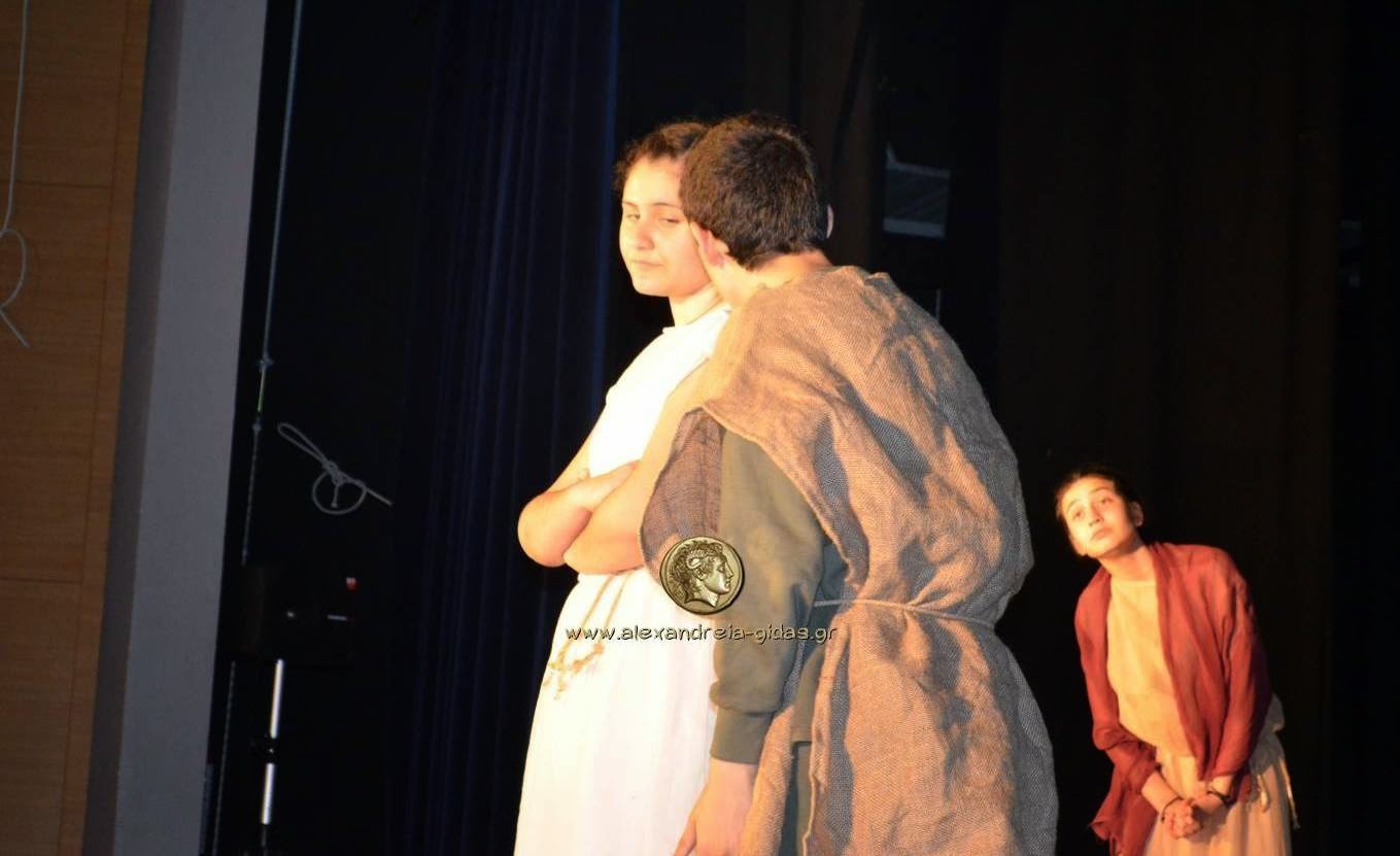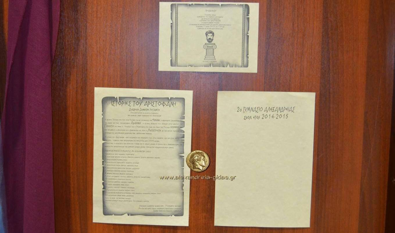 Η Θεατρική Ομάδα μαθητών του 2ου Γυμνασίου Αλεξάνδρειας παρουσίασε την παράταση «ΙΣΤΟΡΙΕΣ ΤΟΥ ΑΡΙΣΤΟΦΑΝΗ» σε διασκευή Δημήτρη Ποταμίτη το απόγευμα της Δευτέρας 11/05 στο Δημοτικό Αμφιθέατρο Πλατέος.