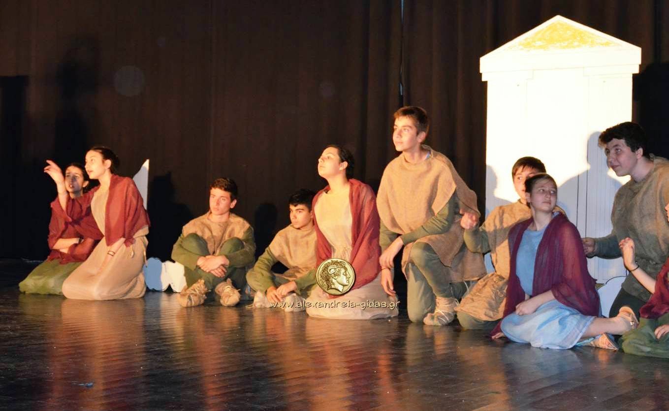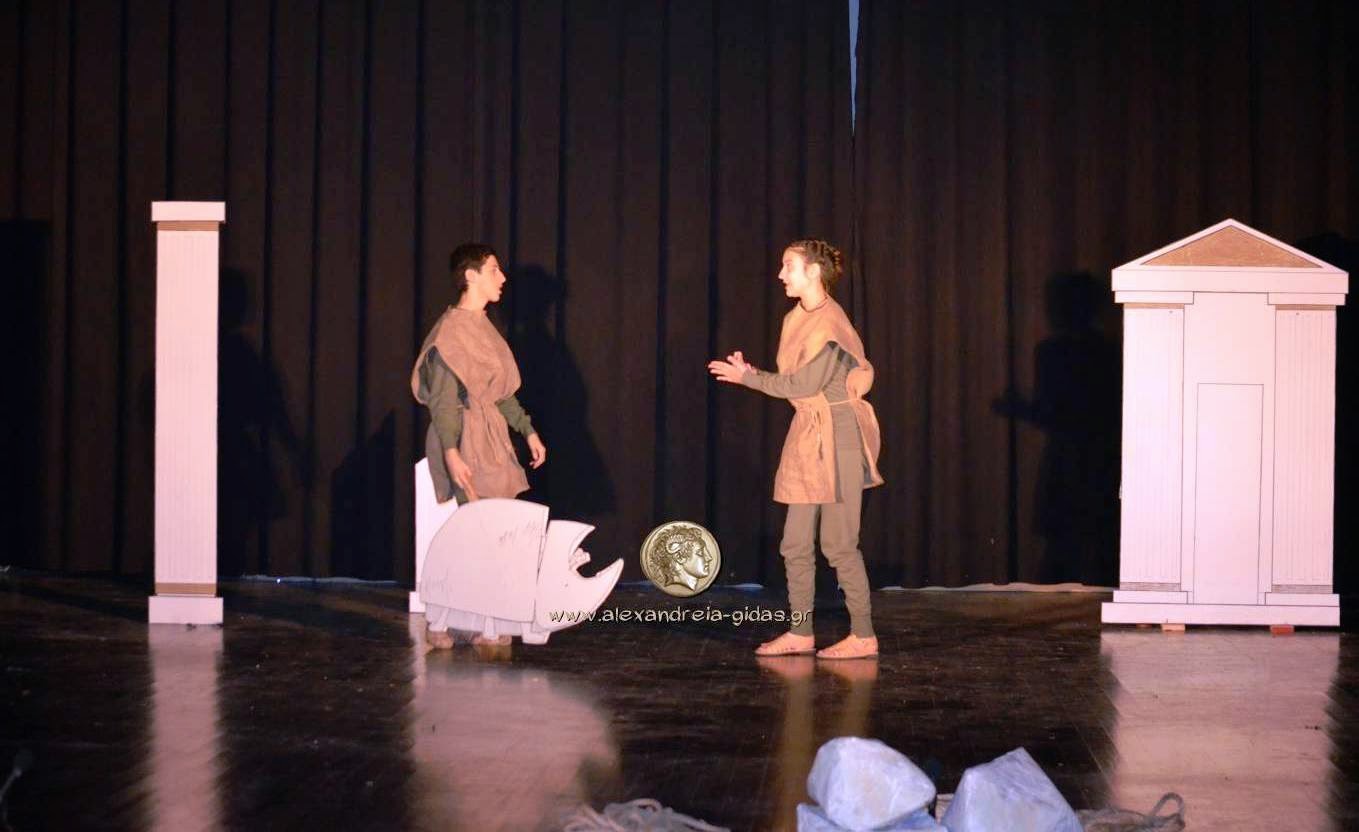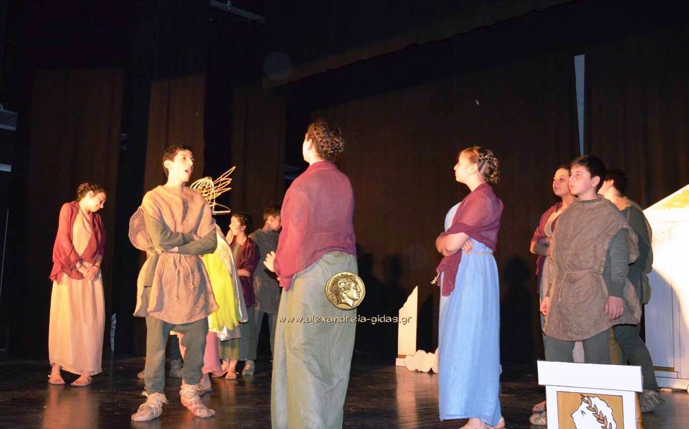 Η Θεατρική Ομάδα μαθητών του 2ου Γυμνασίου Αλεξάνδρειας παρουσίασε την παράταση «ΙΣΤΟΡΙΕΣ ΤΟΥ ΑΡΙΣΤΟΦΑΝΗ» σε διασκευή Δημήτρη Ποταμίτη το απόγευμα της Δευτέρας 11/05 στο Δημοτικό Αμφιθέατρο Πλατέος.