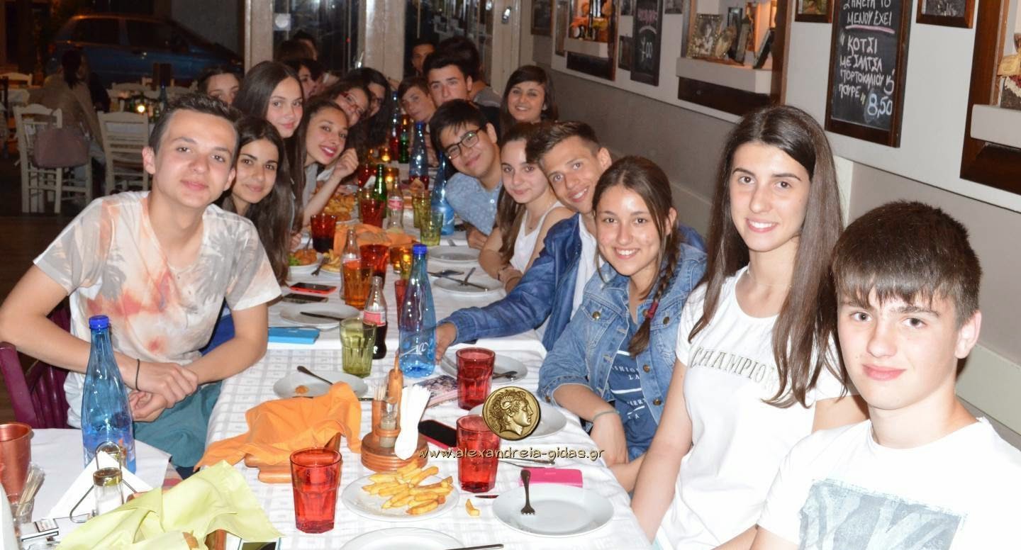 Μετά την ολοκλήρωση της παράστασης του Δράκου που έδωσαν στο Πλατύ (δείτε πλούσιο φωτορεπορτάζ κάνοντας κλικ ΕΔΩ) το βράδυ της Τετάρτης, οι συντελεστές της βραβευμένης παράστασης (μαθητές και καθηγήτριες) γιόρτασαν την επιτυχία του έργου στην Πιπεριά στον πεζόδρομο Αλεξάνδρειας.