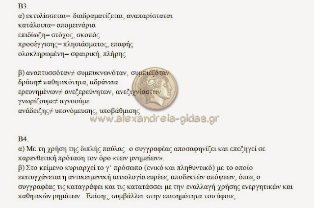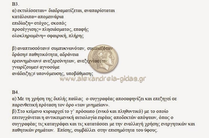 To Αλεξάνδρεια-Γιδάς σε συνεργασία με το φιλολογικό φροντιστήριο ΑΡΙΣΤΟΤΕΛΕΙΟ στην Αλεξάνδρεια, το onlineclass.gr και την ΟΕΦΕ σας παρουσιάζουν και φέτος για τέταρτη συνεχόμενη χρονιά τις απαντήσεις στα θέματα των πανελληνίων εξετάσεων.