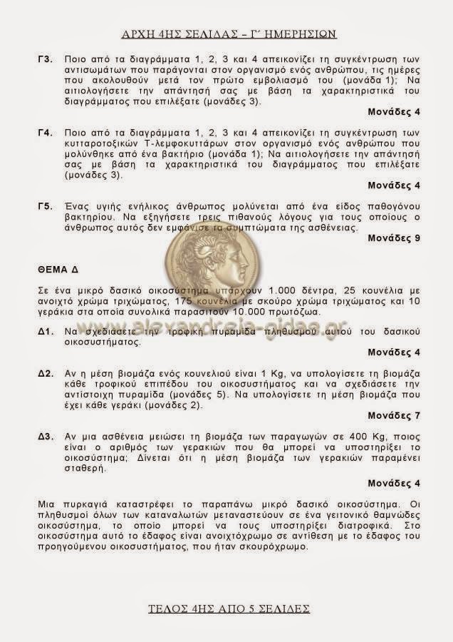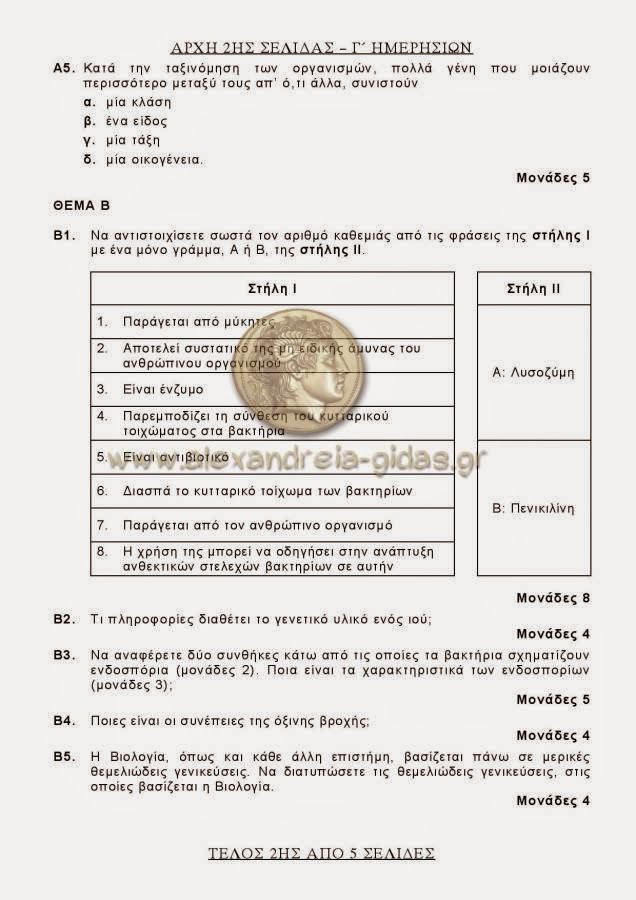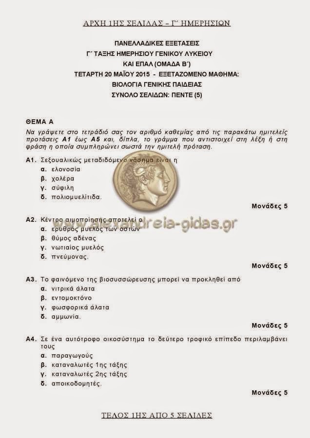 Σας παρουσιάζουμε παρακάτω το σημερινό θέμα πανελλαδικών για το μάθημα της Βιολογίας Γενικής Παιδείας.