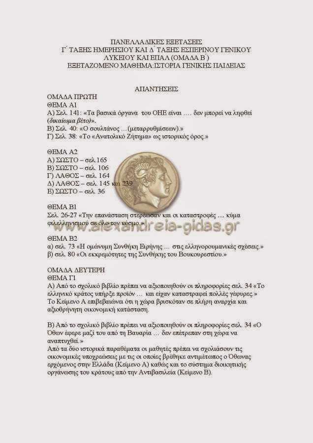To Αλεξάνδρεια-Γιδάς σε συνεργασία με το φιλολογικό φροντιστήριο ΑΡΙΣΤΟΤΕΛΕΙΟ στην Αλεξάνδρεια, το onlineclass.gr και την ΟΕΦΕ σας παρουσιάζουν και φέτος για τέταρτη συνεχόμενη χρονιά τις απαντήσεις στα θέματα των πανελληνίων εξετάσεων.