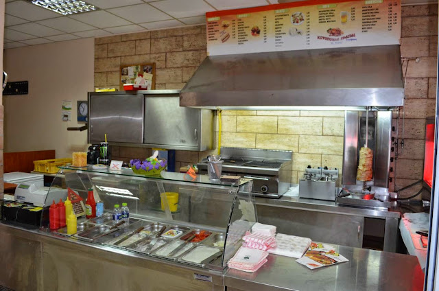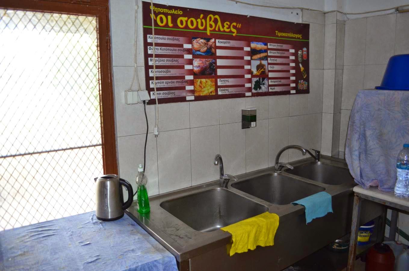 Περιέχει μηχανήματα κουζίνας, λάντζας, αποθήκης και ψυγείων καθώς και συναγερμό.