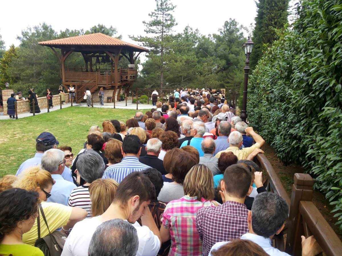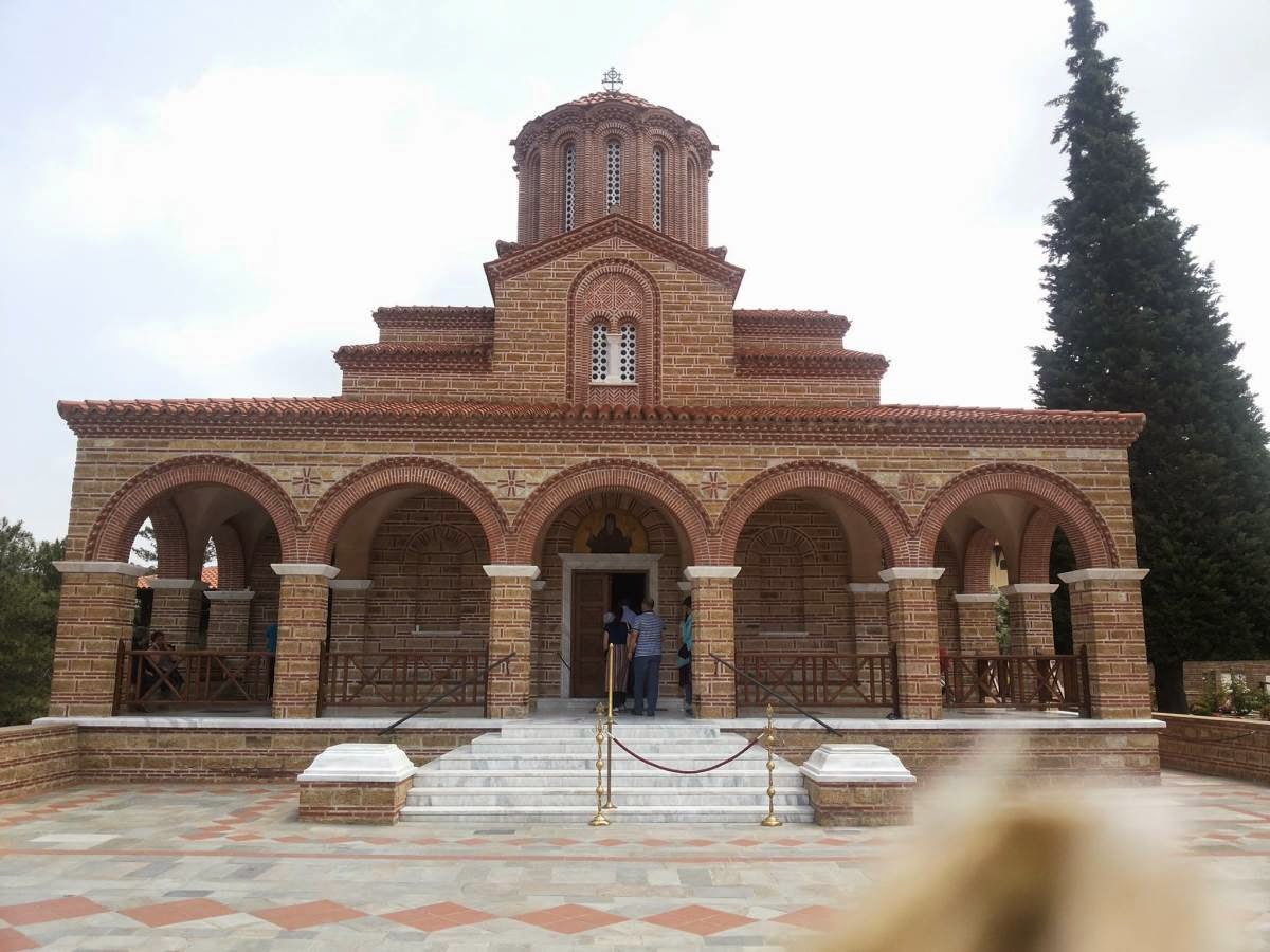 2) Στη συνέχεια, με τα λεωφορεία κατευθυνθήκαμε στην Σουρωτή Θεσσαλονίκης, όπου βρίσκεται η Ιερά Μονή Άγιου Ιωάννη του Θεολόγου και του Αγίου Αρσενίου του Καππαδόκη. Στην Μονή υπάρχουν τα Λείψανα του Αγίου Αρσενίου του Καππαδόκη που βρίσκονται στο καθολικό της. Μέσα στον αύλειο χώρο της Μονής βρίσκεται ο Τάφος του Αγίου Παϊσίου όπου και προσκυνήσαμε περιμένοντας στην ουρά μαζί με άλλους εκατοντάδες προσκυνητές.