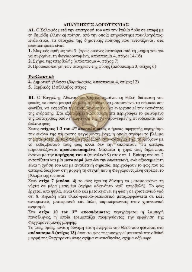 Σας παρουσιάζουμε παρακάτω τις απαντήσεις στο σημερινό θέμα πανελλαδικών για το μάθημα της Λογοτεχνίας (μπορείτε να διαβάσετε το θέμα ΕΔΩ)