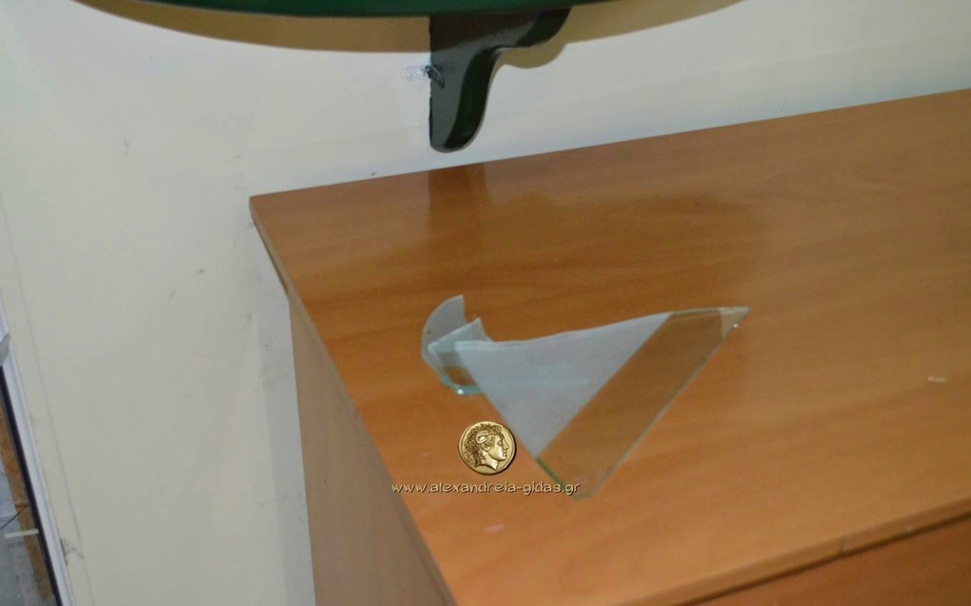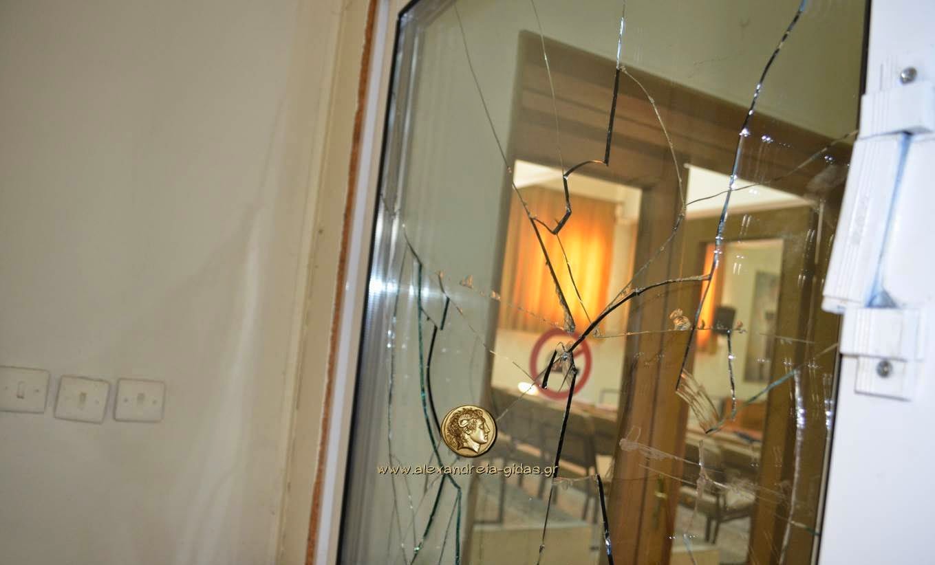 Το δημαρχείο Αλεξάνδρειας παραβίασαν άγνωστοι (προφανώς κατά τη διάρκεια της νύχτας του Σαββάτου προς Κυριακή).