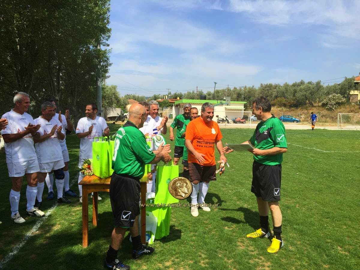 Ο αγώνας ήταν χάρμα ιδέσθαι. Προηγηθήκαμε με ένα καταπληκτικό γκολ του Στέλιου Διτσόλα , αλλά γρήγορα οι Αγριάς ανέτρεψαν το σκορ με ένα εκπληκτικό σε εκτέλεση γκολ του Αλιάτη Τάκη και του Καρδιτσιώτη Πέτρου. Το ημίχρονο βρήκε προηγούμενους τους Παλαίμαχους Αλξάνδρειας , με 2 ακόμη γκολ που πέτυχαν ο Φ. Παπαδόπουλος και ο Διτσόλας. Δοκάρι είχε ο Μουταφίδης.