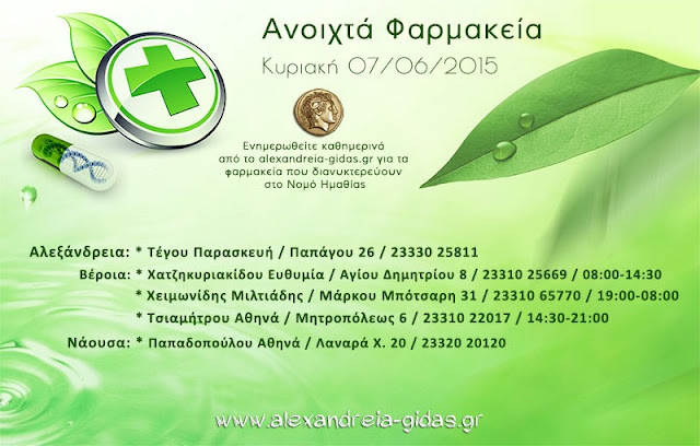 ΤΟΠΙΚΑ 7 Ιουνίου, 2015 posted by admin Share Ανοιχτά φαρμακεία Ημαθίας Κυριακή 7 Ιουνίου Αλεξάνδρεια: Αφήστε μια απάντηση Ακύρωση απάντησηςΗ ηλ. διεύθυνση σας δεν δημοσιεύεται. Τα υποχρεωτικά πεδία σημειώνονται με *Σχόλιο * Όνομα Email Ιστότοπος Αποθήκευσε το όνομά μου, email, και τον ιστότοπο μου σε αυτόν τον πλοηγό για την επόμενη φορά που θα σχολιάσω.
