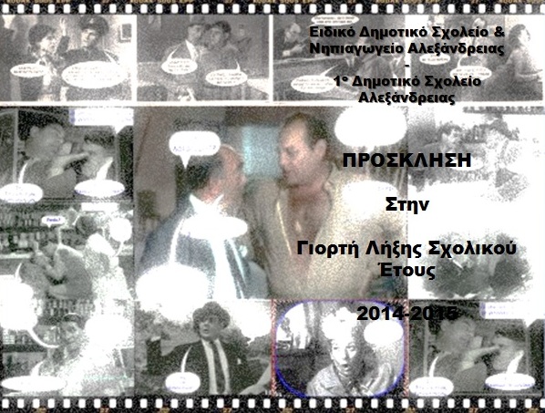 Οι γονείς, οι μαθητές και το εκπαιδευτικό προσωπικό του Ειδικού Δημ. Σχολείου & Νηπ. Αλεξάνδρειας –οι μαθητές και η δασκάλα του ΣΤ2 του 1ου Δημ. Σχ. με ιδιαίτερη χαρά, σας προσκαλούν στην ετήσια γιορτή λήξης του σχολικού έτους 2014-2015.