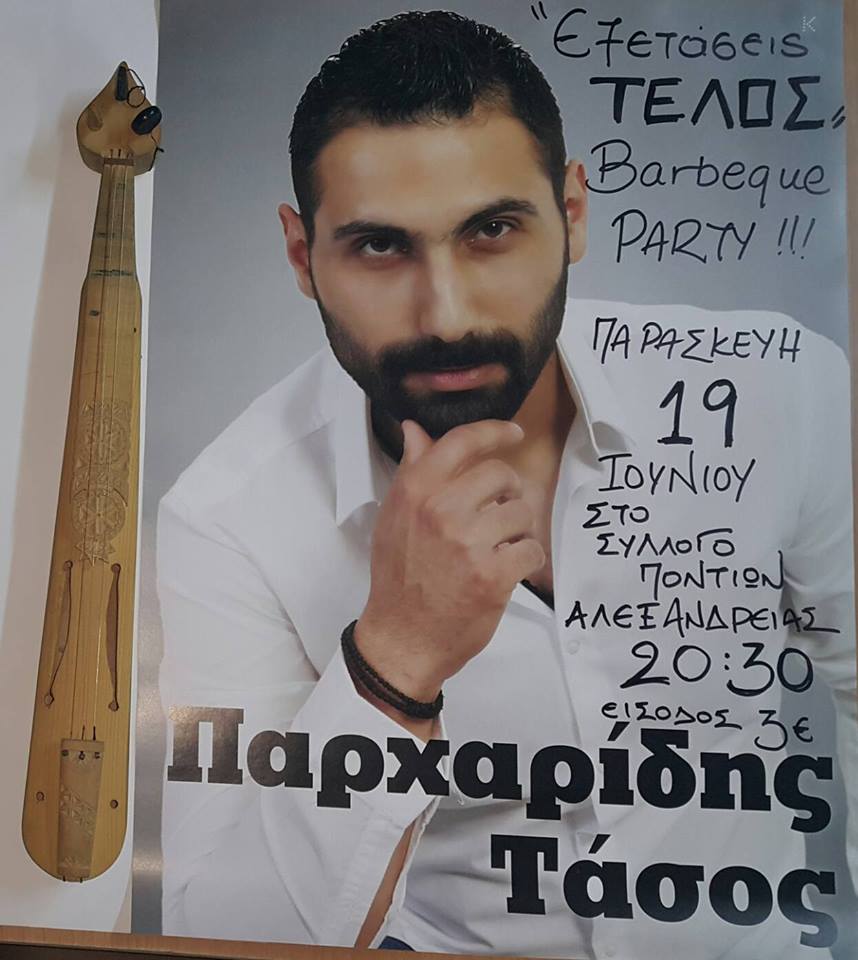 pontioi (Αντιγραφή)Ο Σύλλογος Ποντίων Αλεξάνδρειας και περιχώρων με αφορμή τη λήξη της “χορευτικής περιόδου” διοργανώνει βραδιά Barbeque και ποντιακό γλέντι την Παρασκευή 19 Ιουνίου στην αίθουσα του συλλόγου.