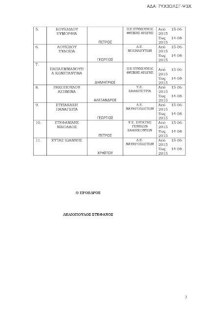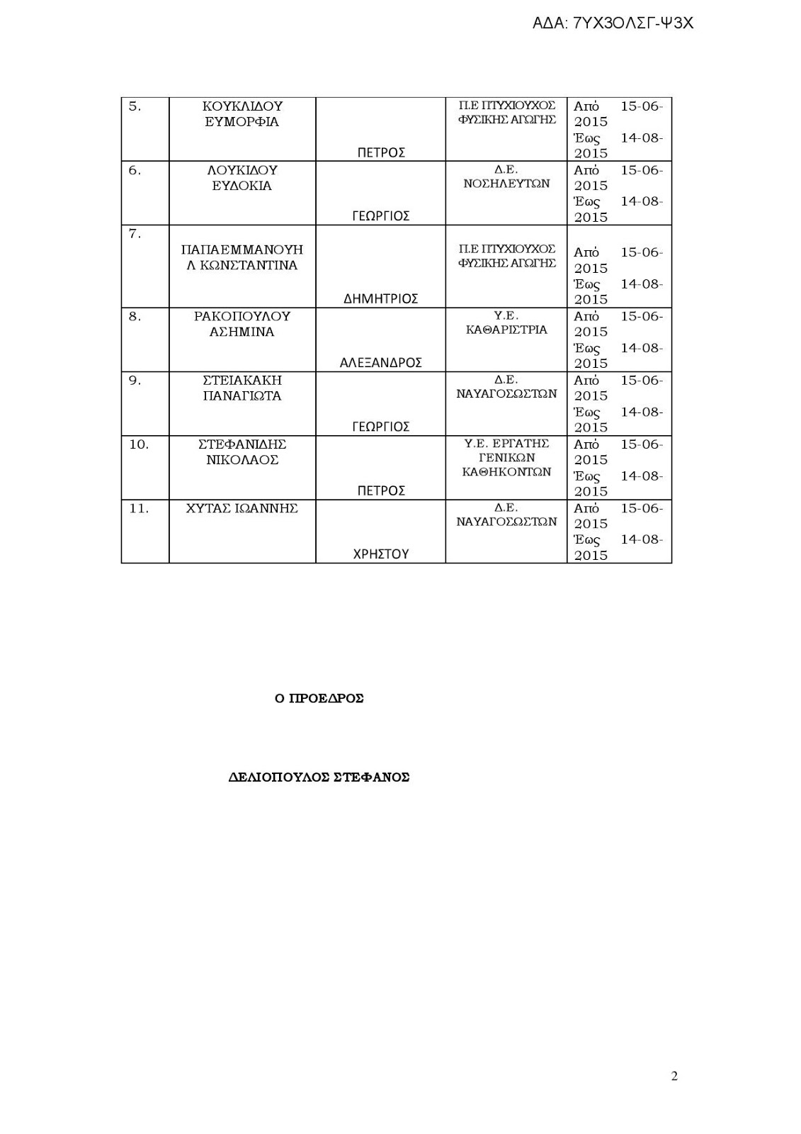 Παρακάτω θα βρείτε τα ονόματά τους και τη διάρκεια πρόσληψής τους: