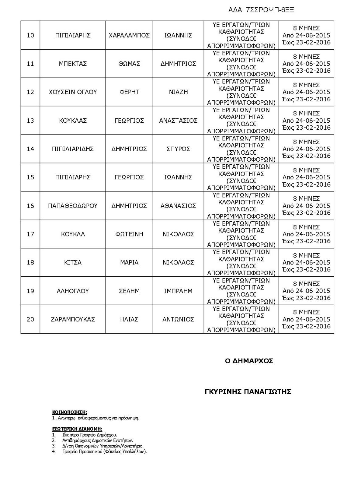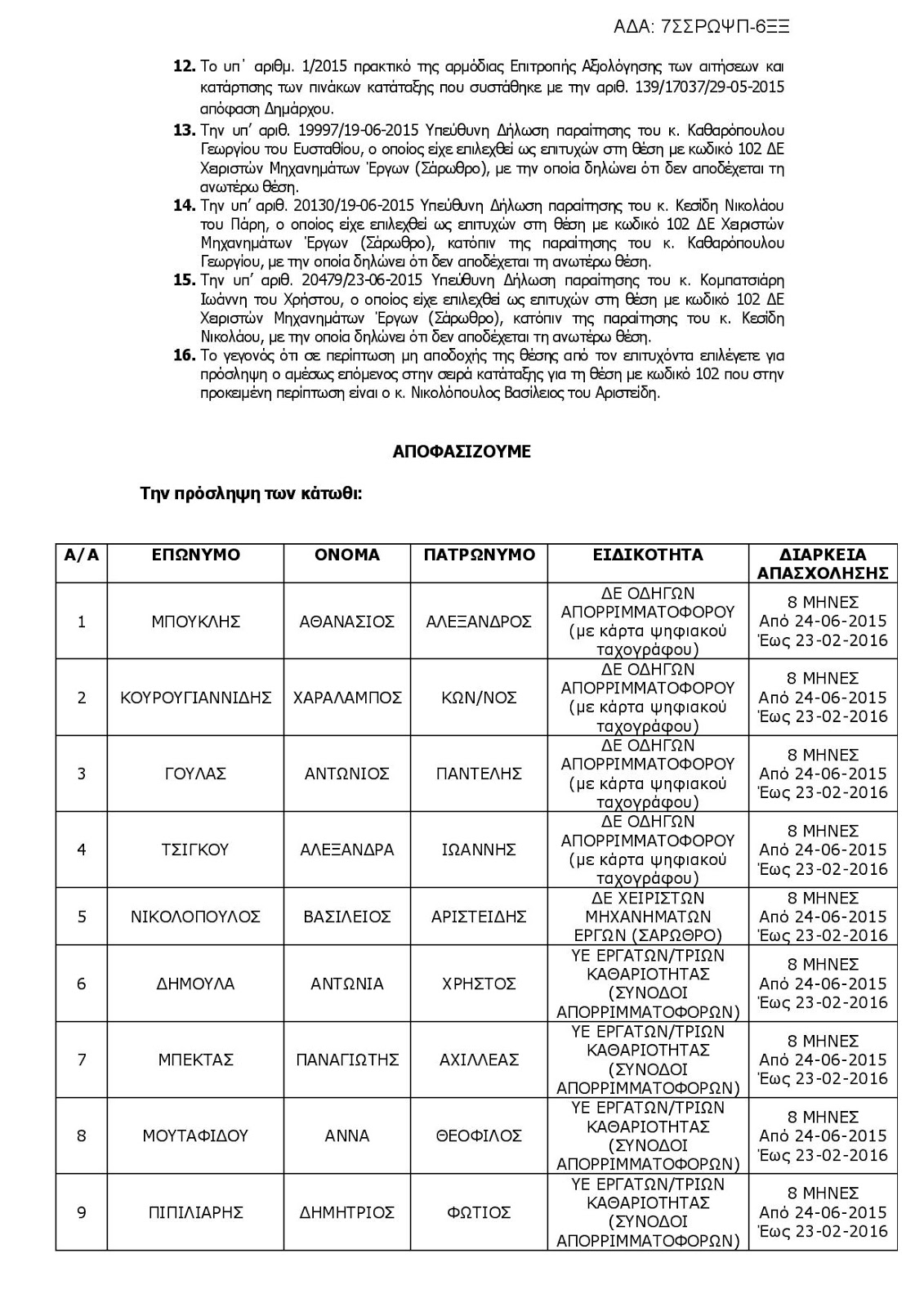 Οι προσλήψεις θα έχουν διάρκεια οκτώ (8) μηνών.