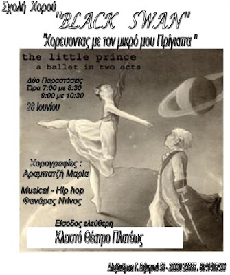 Η σχολή χορού Black Swan θα παρουσιάσει δύο παραστάσεις με τίτλο “Χορεύοντας με τον μικρό μου Πρίγκιπα” στο κλειστό θέατρο Πλατέος.