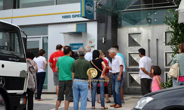 Η γενικότερη αμφιβολία και αναστάτωση που επικρατεί τις τελευταίες ώρες πιο έντονα στην χώρα μας και η αβεβαιότητα της συμφωνίας καθώς και το δημοψήφισμα το οποίο ανακοίνωσε χτες ο πρωθυπουργός, έχει οδηγήσει πολλούς πολίτες και της Αλεξάνδρειας στις τράπεζες για να “σηκώσουν” τα χρήματα που έχουν αποταμιεύσει.