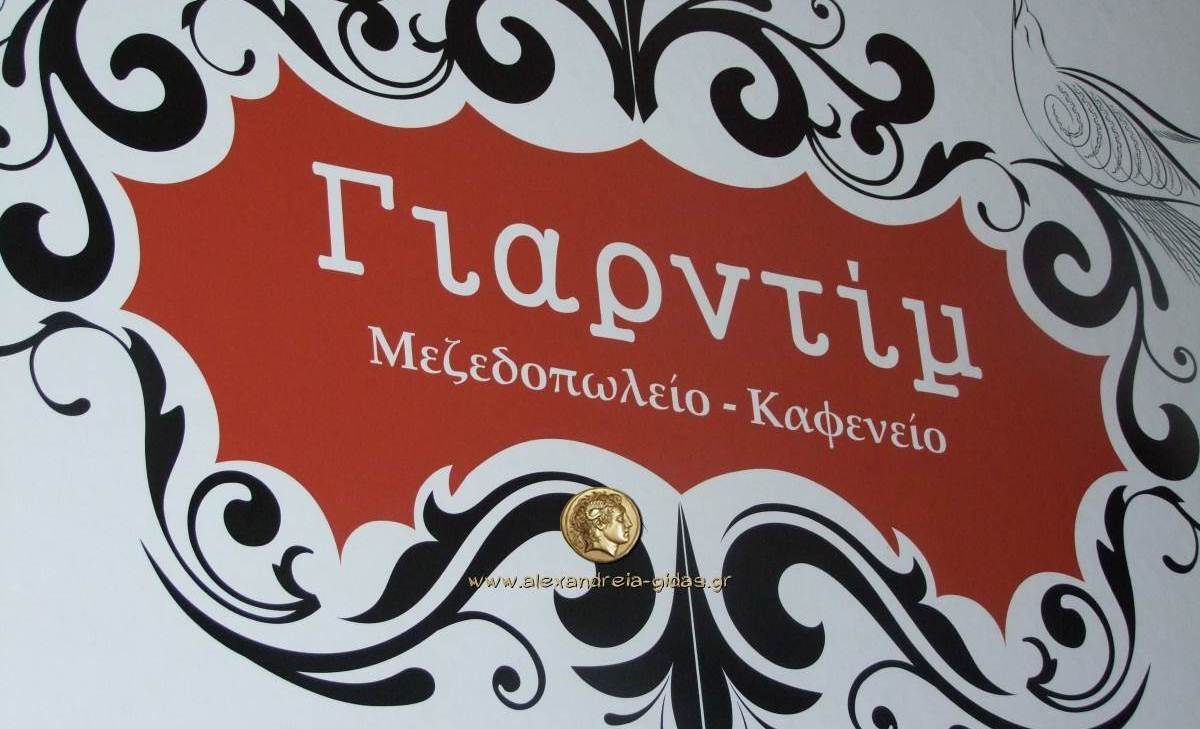 Το καφέ – μεζεδοπωλείο ΓΙΑΡΝΤΙΜ λειτουργεί εδώ και μικρό χρονικό διάστημα στην Αλεξάνδρεια στην οδό Μακεδονομάχων 19 απέναντι από την Εστία Ρουμλουκιωτών (πρώην ξενοδοχείο Δωδώνη).