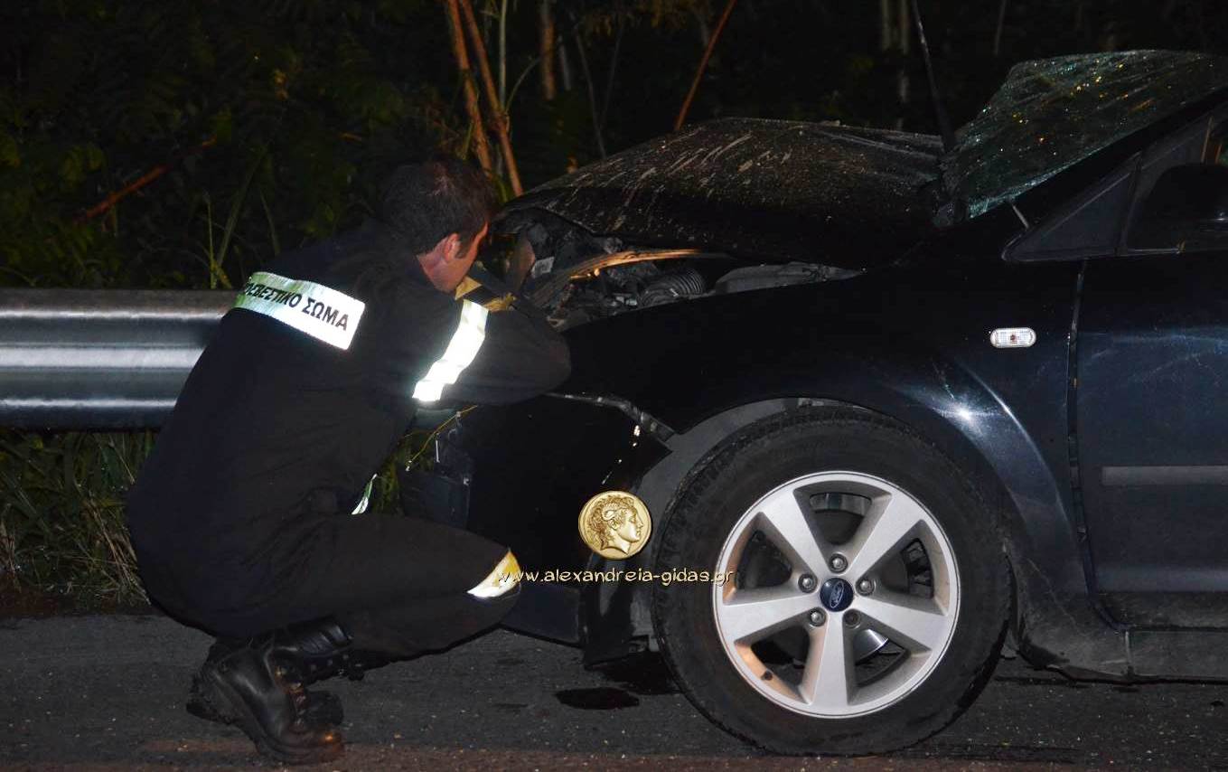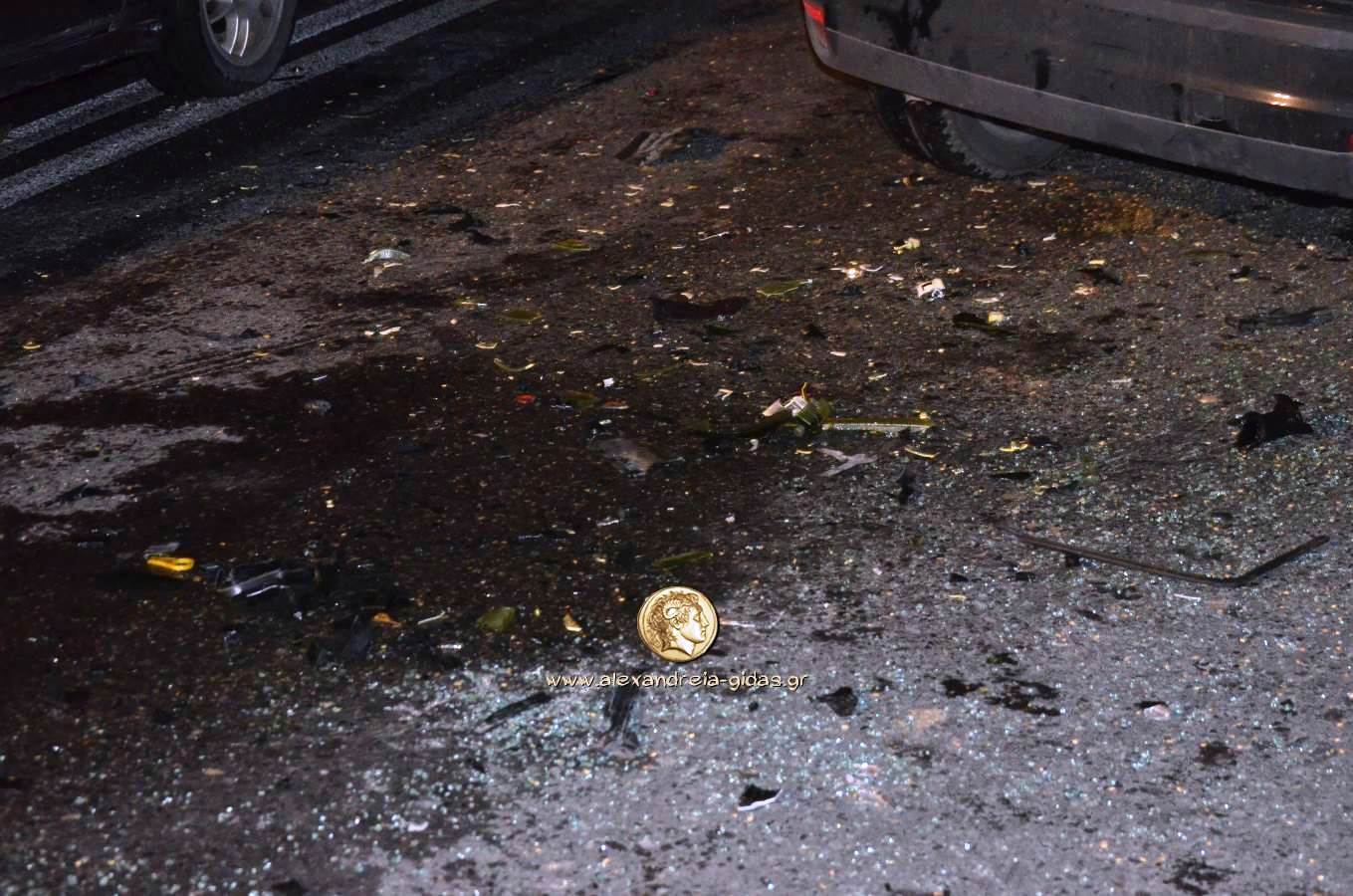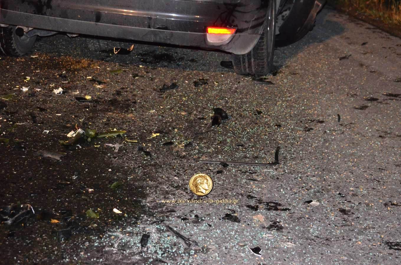 Τροχαίο ατύχημα σημειώθηκε περίπου στις 11 το βράδυ της Κυριακής 28 Ιουνίου έξω από την Αλεξάνδρεια με κατεύθυνση προς Νησέλι στο ύψος της στροφής για Κορυφή.