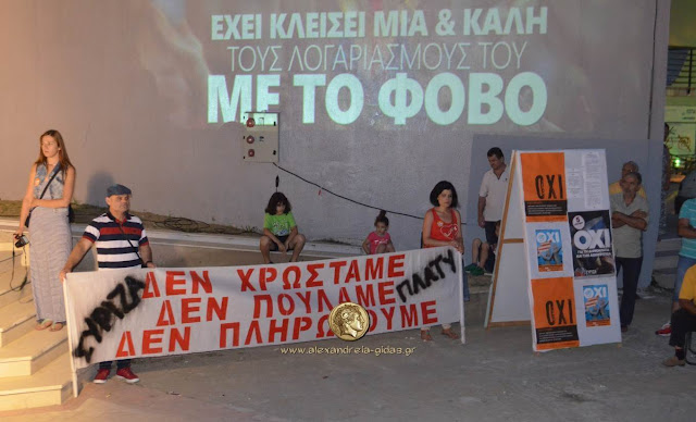 Εκεί βρέθηκαν και οι τρεις βουλευτές του Σύριζα Ημαθίας και απηύθυναν χαιρετισμό καθώς και τις απόψεις τους σχετικά με το δημοψήφισμα παίρνοντας θέση υπέρ του ΟΧΙ.