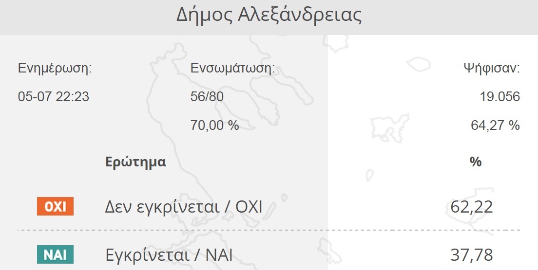 ΠΟΛΙΤΙΚΗ 5 Ιουλίου, 2015 posted by admin Share Συγκεντρωτικό αποτέλεσμα στον δήμο Αλεξάνδρειας σε ποσοστό 70% Ολοκληρώθηκε η καταμέτρηση στο 70% των εκλογικών τμημάτων του δήμου Αλεξάνδρειας. Δείτε τα αποτελέσματα στα 56 από τα 80 εκλογικά τμήματα: Αφήστε μια απάντηση Ακύρωση απάντησηςΗ ηλ. διεύθυνση σας δεν δημοσιεύεται. Τα υποχρεωτικά πεδία σημειώνονται με *Σχόλιο * Όνομα Email Ιστότοπος Αποθήκευσε το όνομά μου, email, και τον ιστότοπο μου σε αυτόν τον πλοηγό για την επόμενη φορά που θα σχολιάσω.