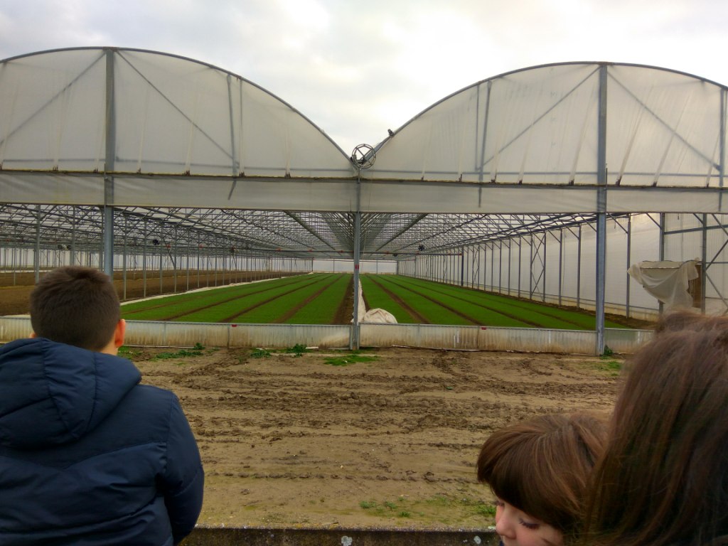 Εκεί τους μαθητές και τους εκπαιδευτικούς ξενάγησαν στα θερμοκήπια όπου καλλιεργούν μαρούλια, ρόκα, σπανάκια και πολλά άλλα λαχανικά.